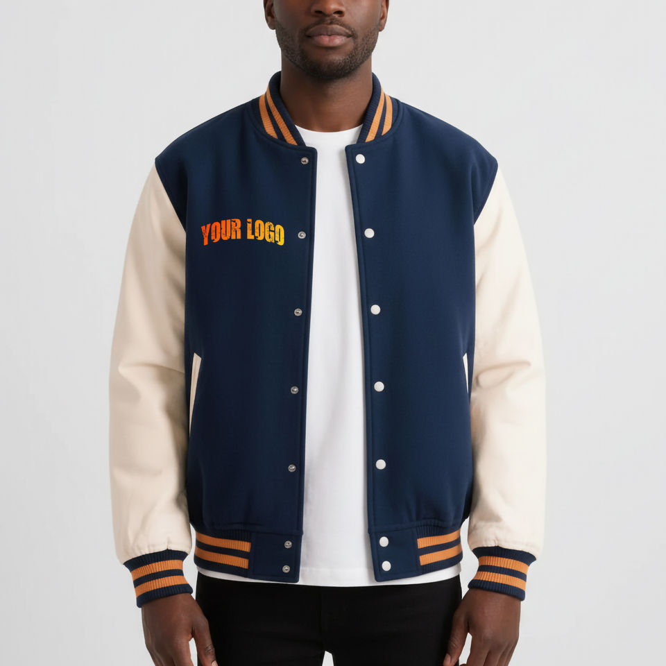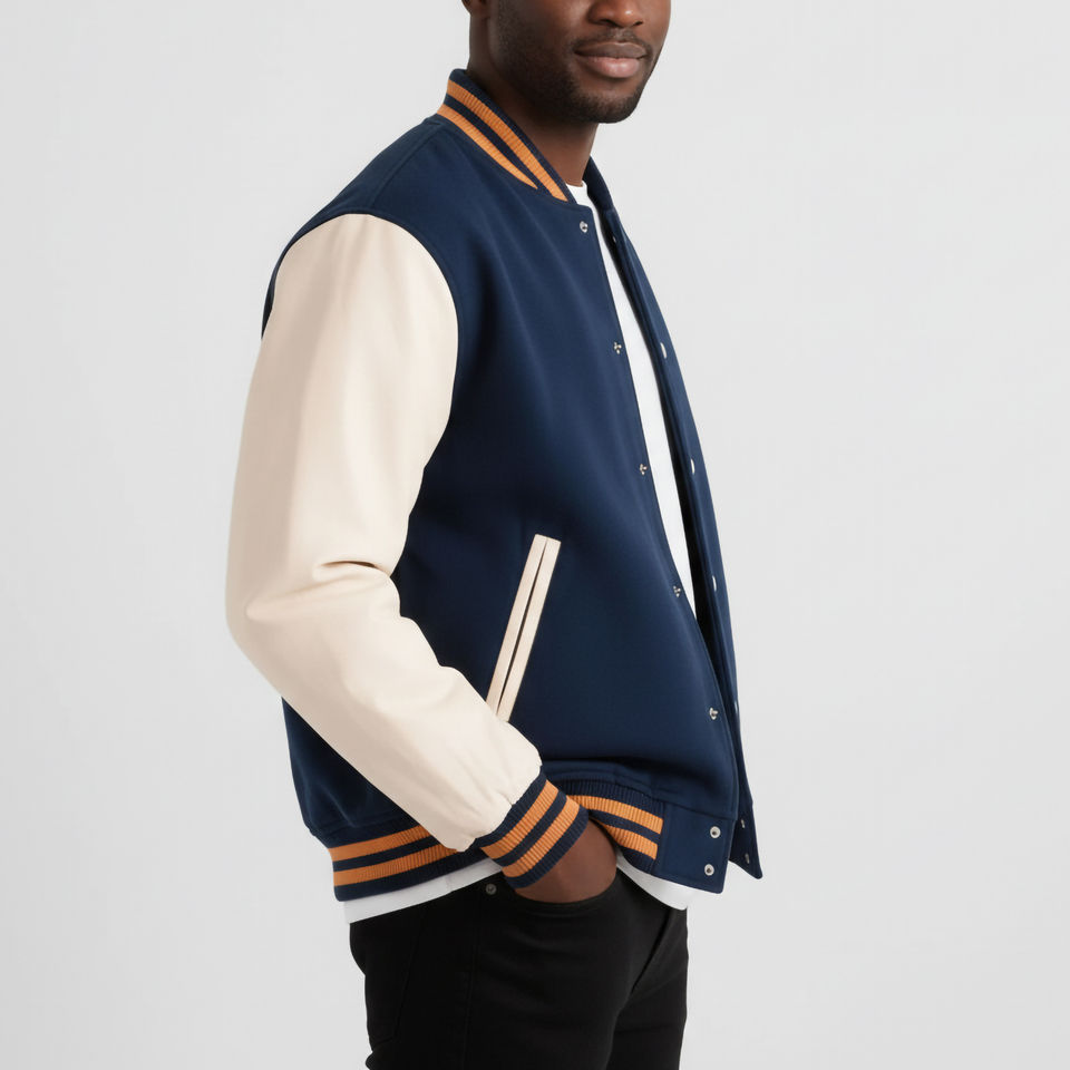 แจ็คเก็ตวาร์ซิตี้ผู้ชายคุณภาพสูง 2 สี แขนหนัง ตัวเสื้อผ้าขนสัตว์ สไตล์สตรีทแวร์ แจ็คเก็ตเบสบอลสำหรับฤดูหนาว
