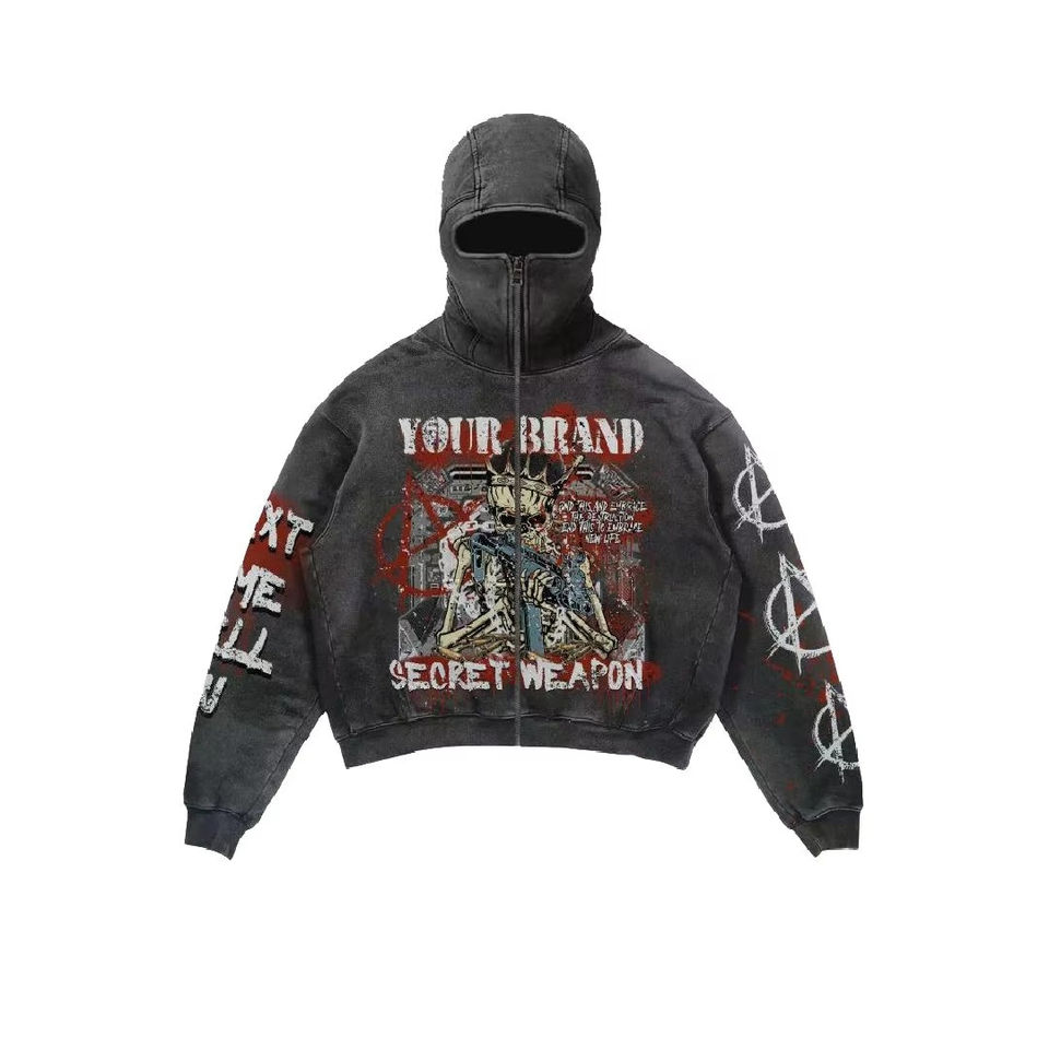 Top-quality Cotton Double Unique Design Hooded Sweatshirt Men Double Headed Eagle Zipper Hoodie Winter Loose Jacket