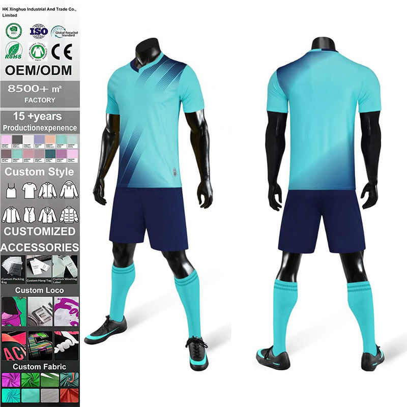 เสื้อฟุตบอลสโมสรสีน้ำเงินขาว พิมพ์ลายโลโก้ด้วยเทคนิคการถ่ายเทความร้อน คุณภาพสูง ระบายอากาศ แห้งเร็ว ผลิตจากผ้าโพลีเอสเตอร์/คอตตอน แขนสั้น