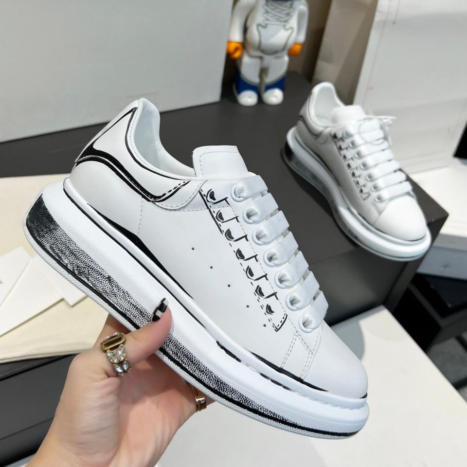 รองเท้าผ้าใบลำลองคุณภาพสูงสำหรับผู้ชายและผู้หญิง สีดำขาว ดีไซน์เรขาคณิต ทรงหนา แบบรัดข้อเท้า มีเชือกผูก ตาข่าย