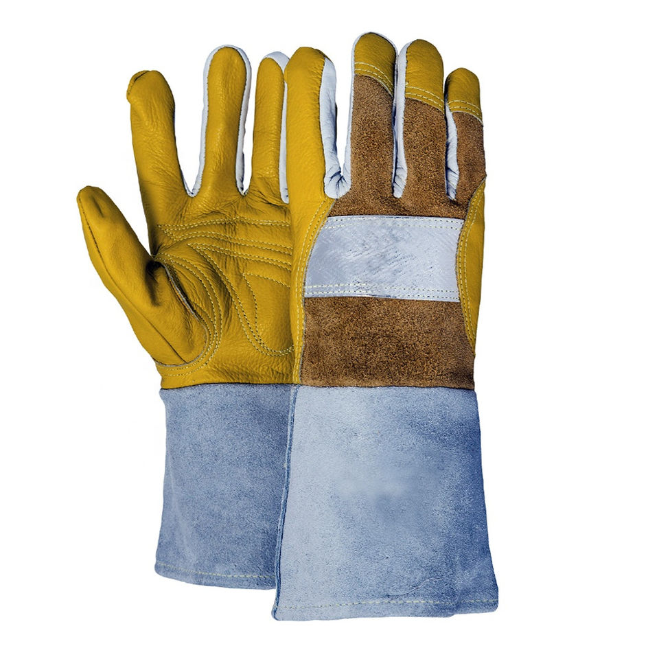 ถุงมือเชื่อมหนังมีความทนทานต่อความร้อนดีไซน์พรีเมี่ยม