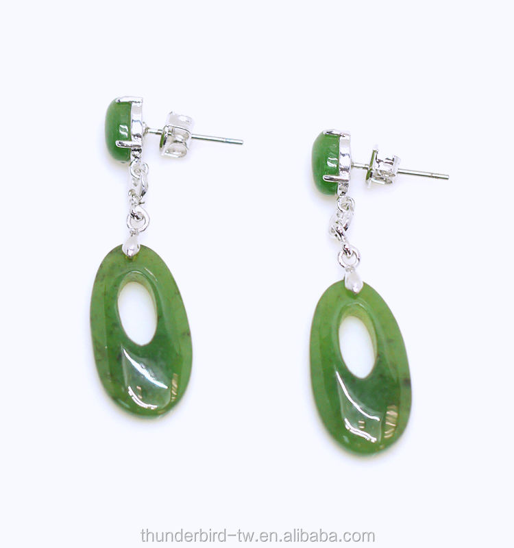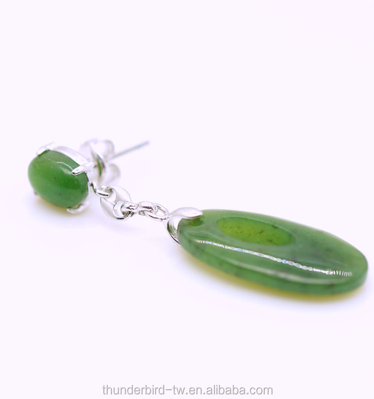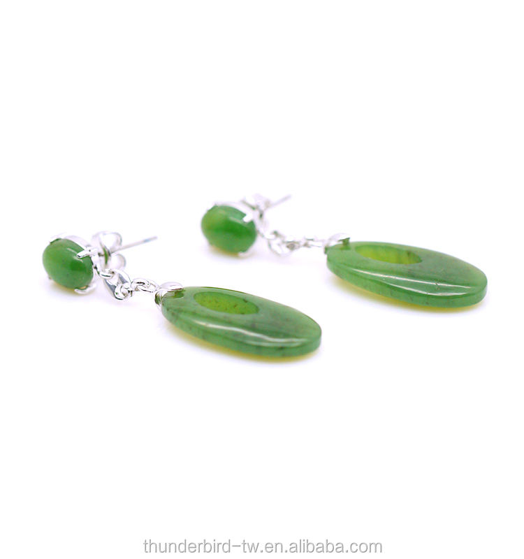 เครื่องประดับอัญมณีทรงวงรีคุณภาพสูงของผู้หญิงต่างหูโลหะผสมจี้เนไฟรต์หยกแท้จากแคนาดา