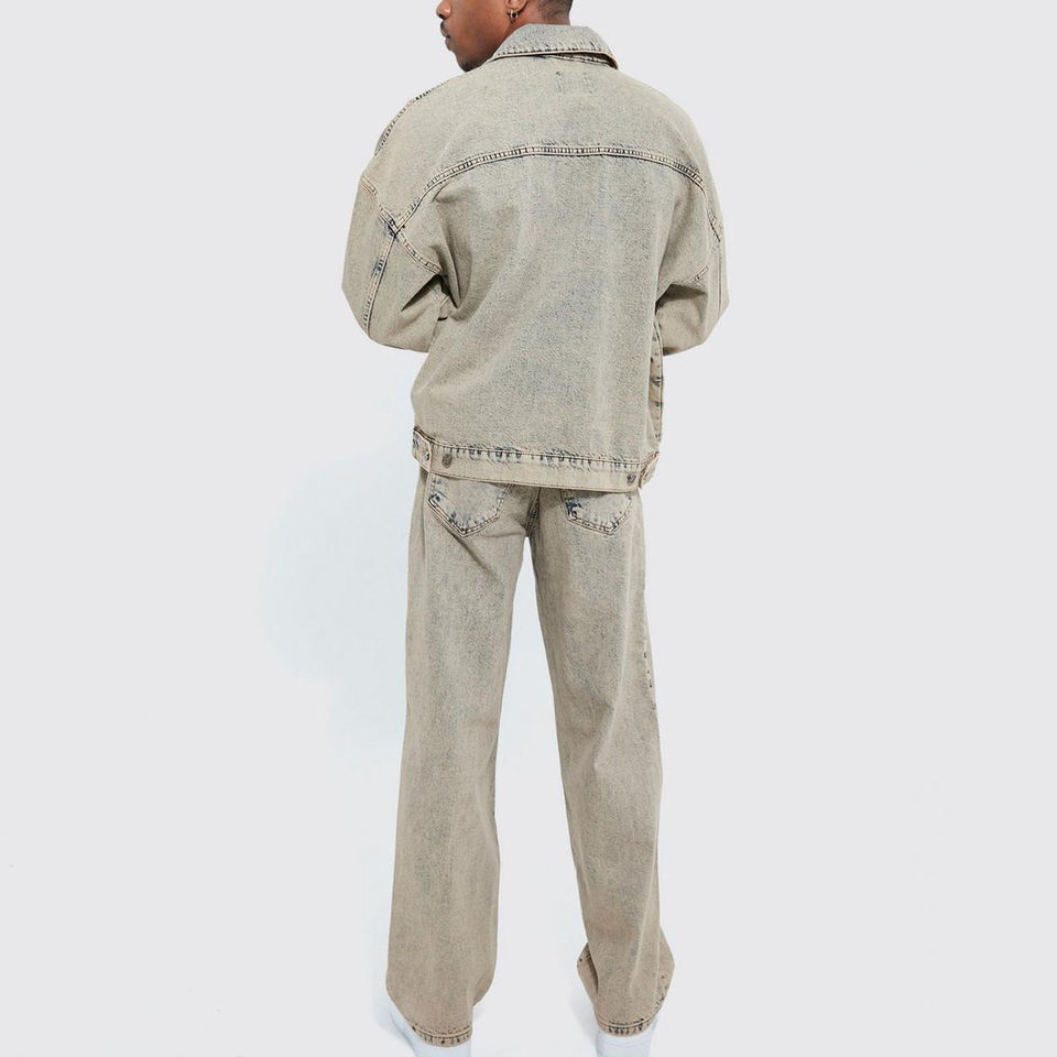 ชุดผ้ายีนส์พร้อมแจ็กเก็ตชุด2ชิ้นสำหรับผู้ชายเสื้อผ้าแนวสตรีท
