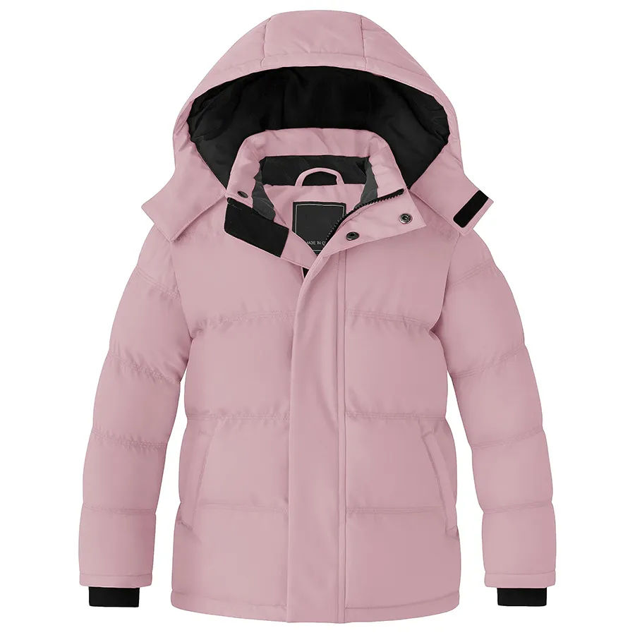 เสื้อโค้ทกันลมให้ความอบอุ่นสำหรับเด็กผู้หญิงเสื้อแจ็คเก็ตมีฮู้ดมีซิปเสื้อขนเป็ดออกแบบโลโก้ได้ตามต้องการ