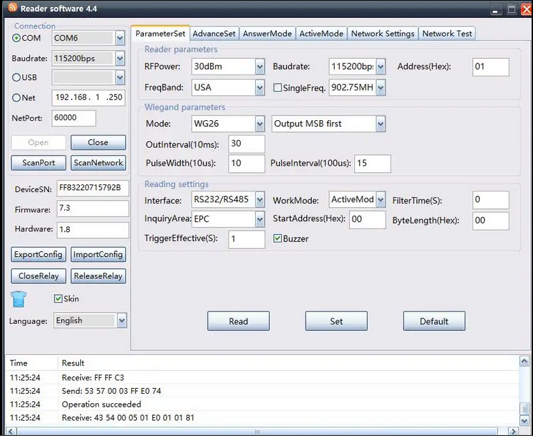 Interface:RS232/485, WG26/34,Trigger,RJ45(TCP/IP)