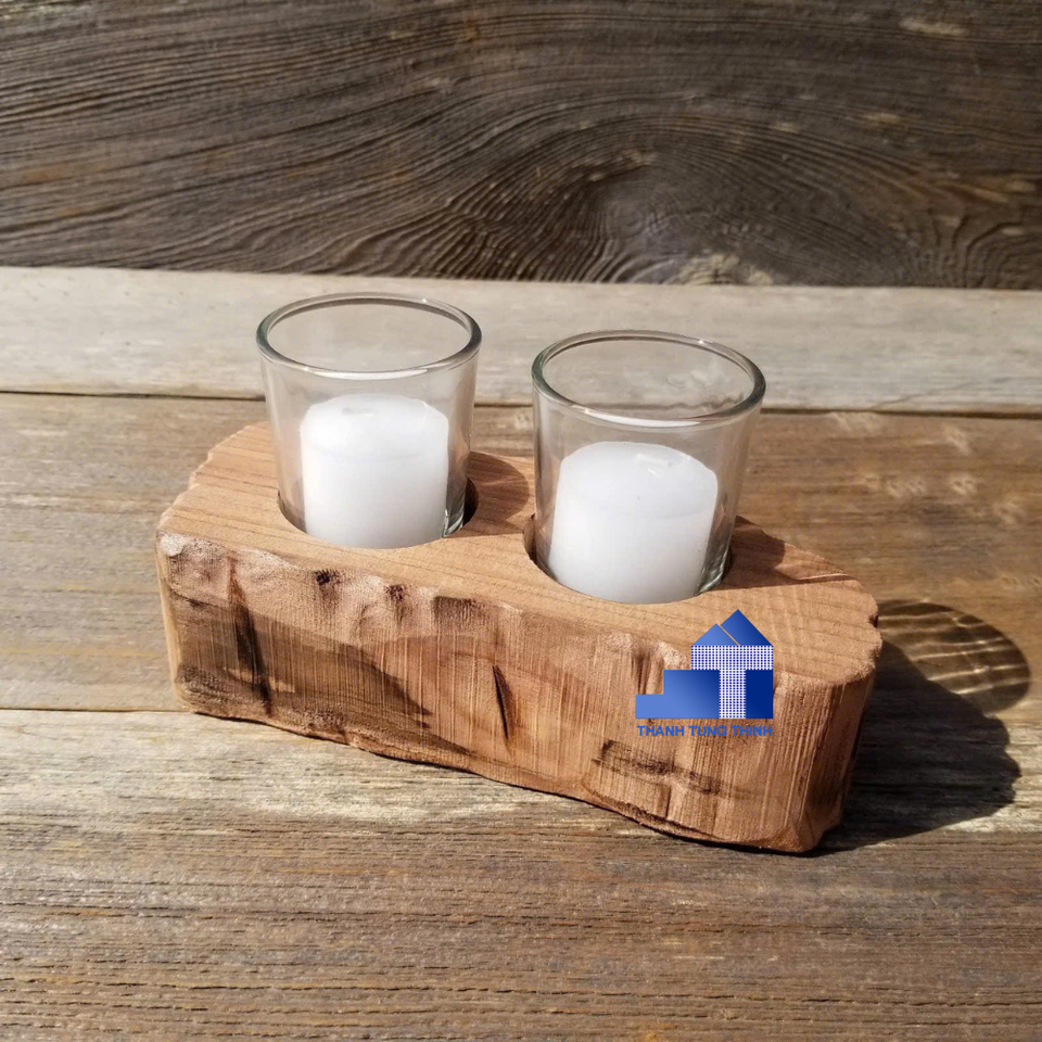 เชิงเทียนไม้แบบชนบทที่วางตรงกลางโต๊ะขัดเงาเพื่อเพิ่มความอบอุ่นให้กับการตกแต่งภายในที่ทำในเวียดนาม