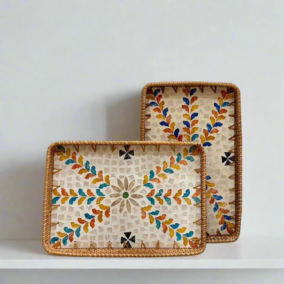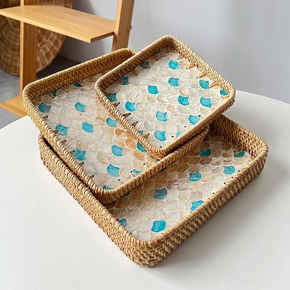 Top-rated rattan mother of pearl tray bathroom bedroom organizing high quality material MOP trays