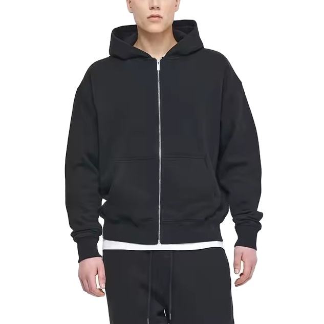 เสื้อมีฮู้ดแบบรูดซิปของผู้ชายผ้าฝ้าย100% บริสุทธิ์เสื้อครอปแบบว่างเปล่า