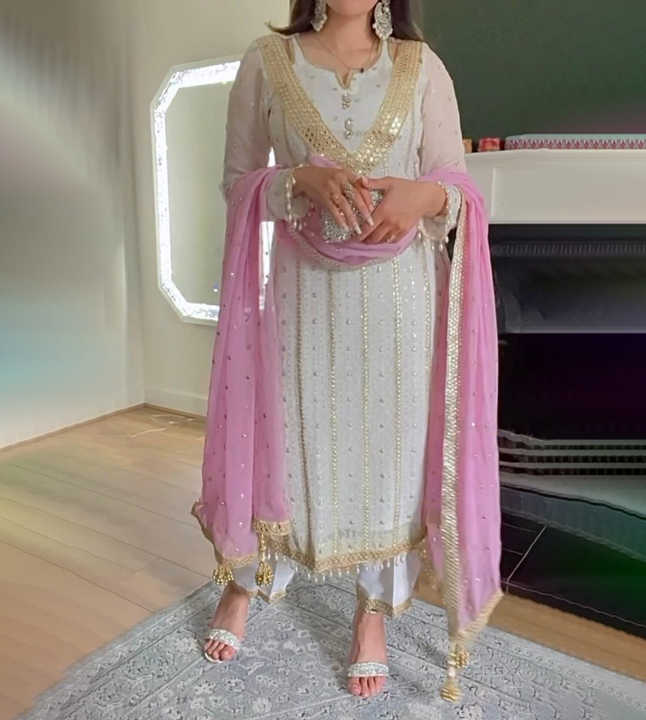 ชุดสูท Georgette Kameez ประดับเลื่อมและงานปักเลื่อมด้วยผ้าทอสำหรับงานแต่งงาน