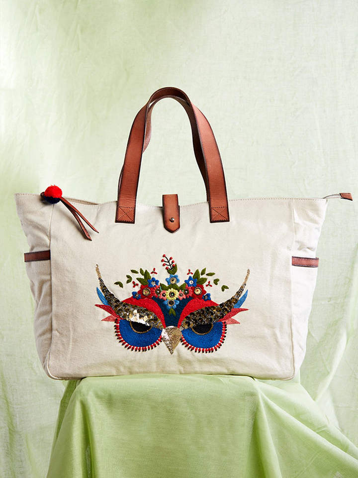 กระเป๋าผ้ากระสอบที่มีดีไซน์งานเย็บปะผ้าฝ้ายปักย้อมสีธรรมชาติและรีไซเคิลได้สำหรับช้อปปิ้ง