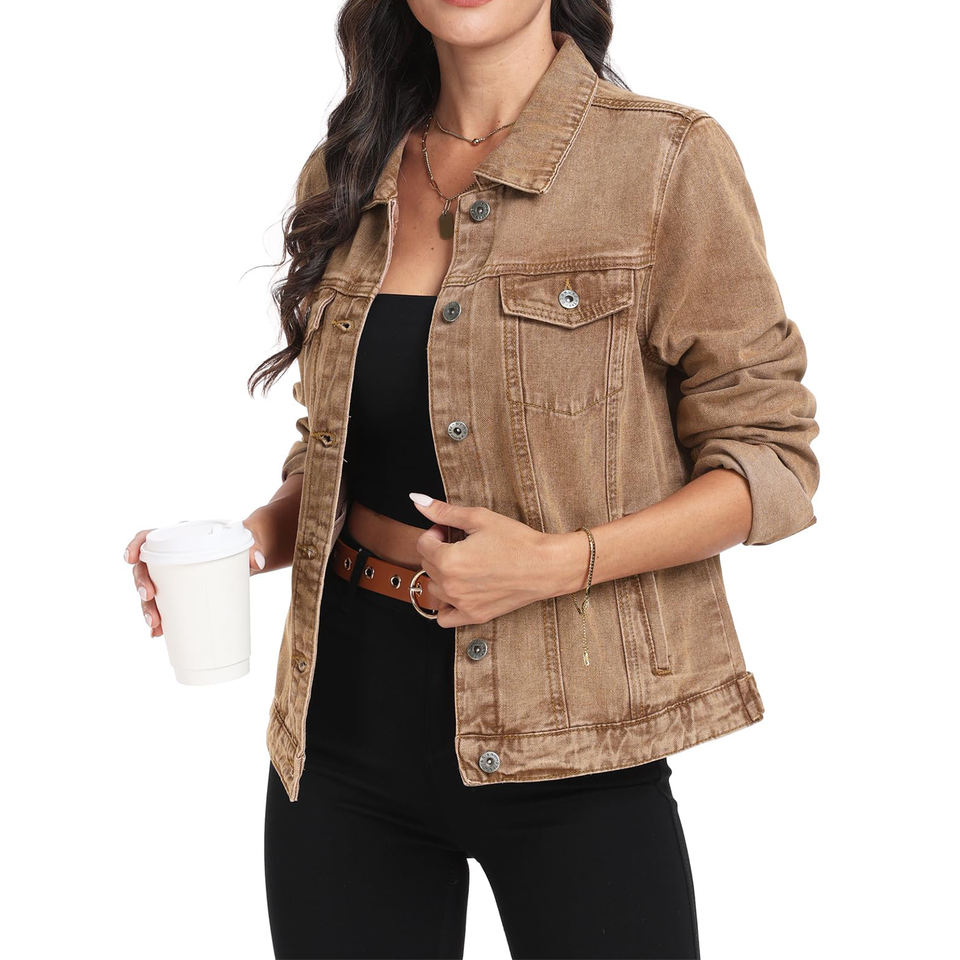 แจ็คเก็ตยีนส์มีกระเป๋าสำหรับผู้หญิงเสื้อแจ็คเก็ตยีนส์ลำลองแฟชั่นไซส์ใหญ่พิเศษ
