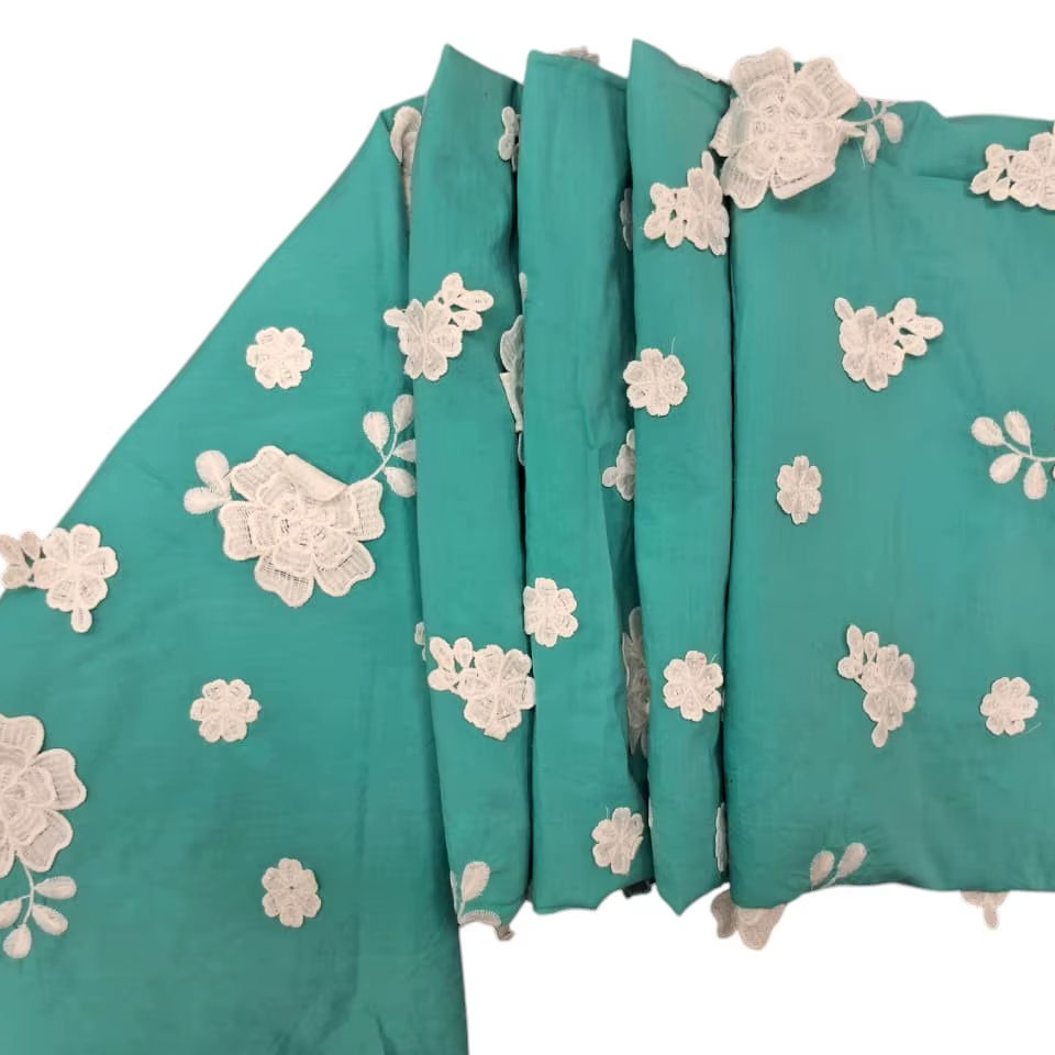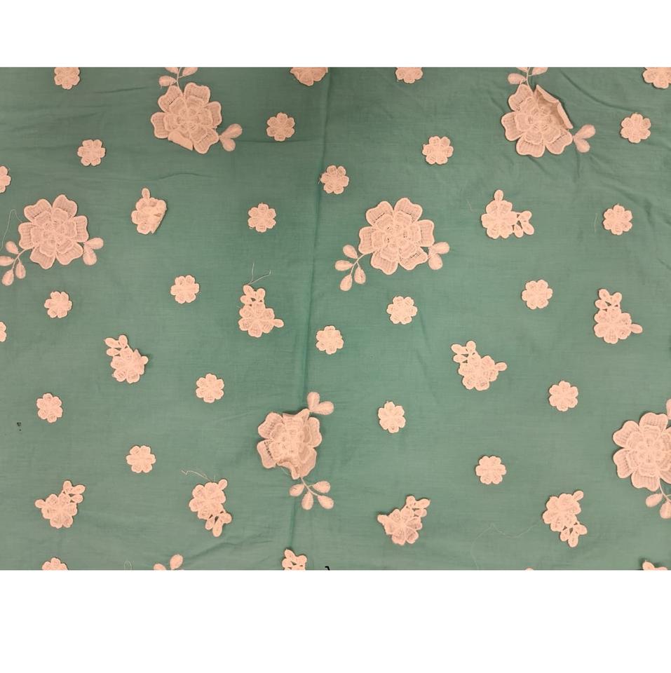 Model Number:Sea Green 3D Floral Applique Pure Cotton Fabric