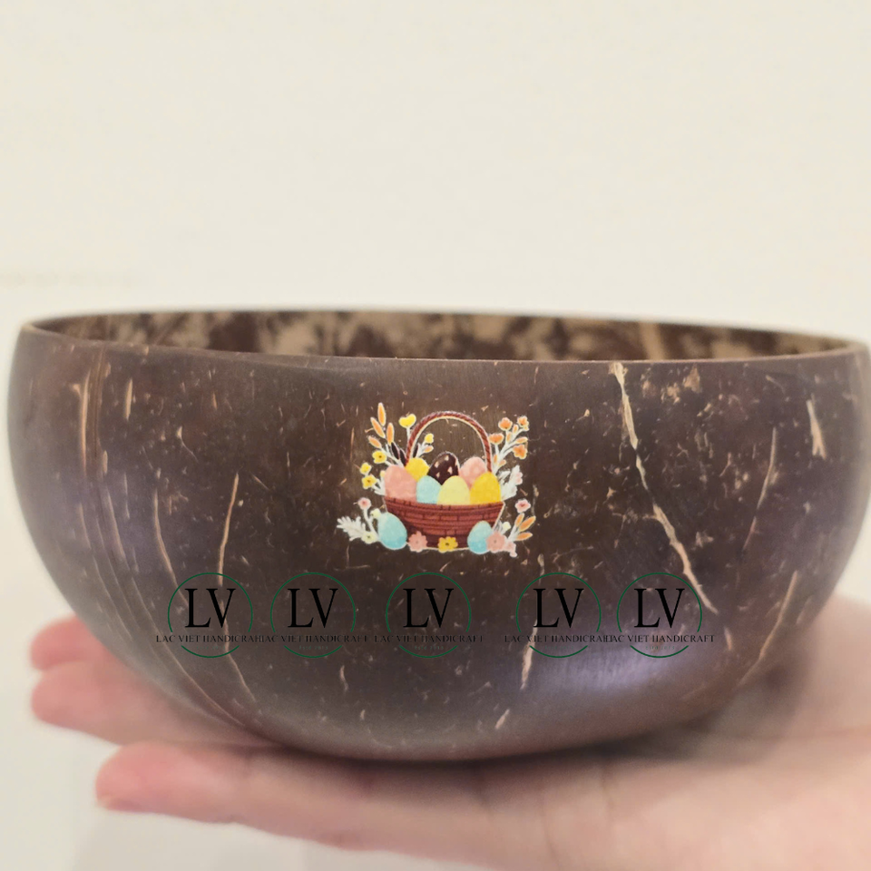 ชามมะพร้าวพิมพ์ลายอีสเตอร์เป็นมิตรกับสิ่งแวดล้อมชามสำหรับสมูทตี้อะไซสลัด500มล. ชามตกแต่งทำจากเวียดนาม