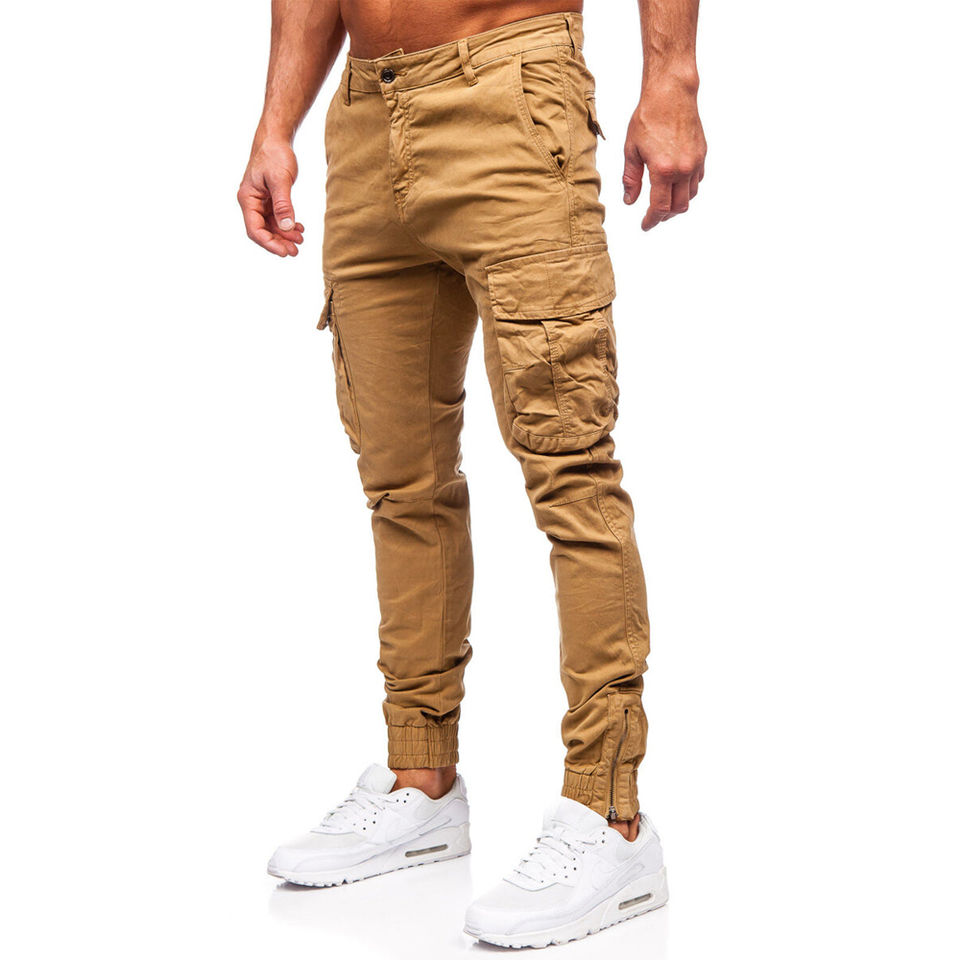 กางเกงเอวรูดสีดำสำหรับผู้ชายแบบสั่งทำกางเกงมีกระดุมติดซิปด้านข้างกางเกงคาร์โก้ใส่ได้ตามใจชอบ