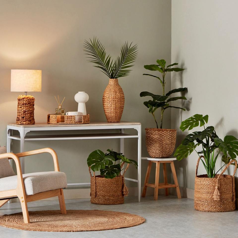แจกันผักตบชวาธรรมชาติแจกันดอกไม้ที่เป็นมิตรต่อสิ่งแวดล้อมตกแต่งโต๊ะ
