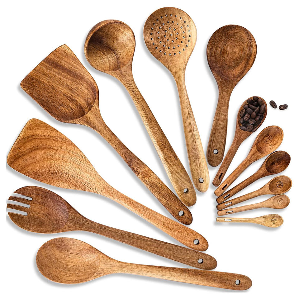 ชุดอุปกรณ์ทำครัวไม้ธรรมชาติขายดีที่สุด สำหรับเครื่องครัวแบบไม่ติดกระทะ ราคาดีที่สุด ตะหลิวไม้