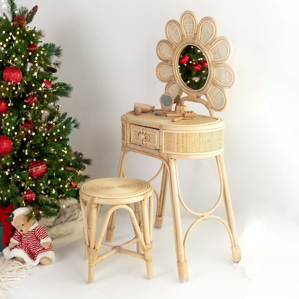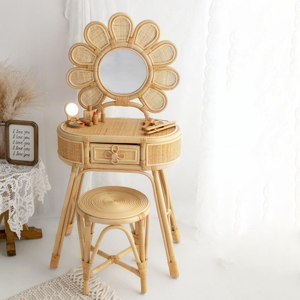 โต๊ะเครื่องแป้งหวายสำหรับเด็กโต๊ะและเก้าอี้สำหรับเด็กโต๊ะเครื่องแป้งทำจากเวียดนาม