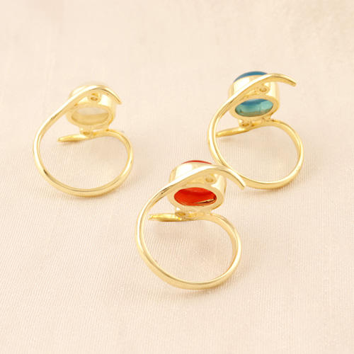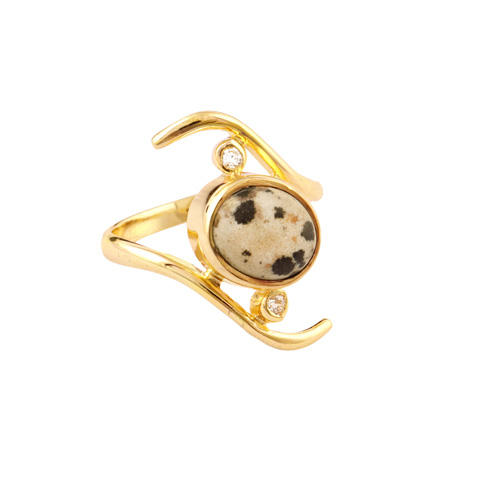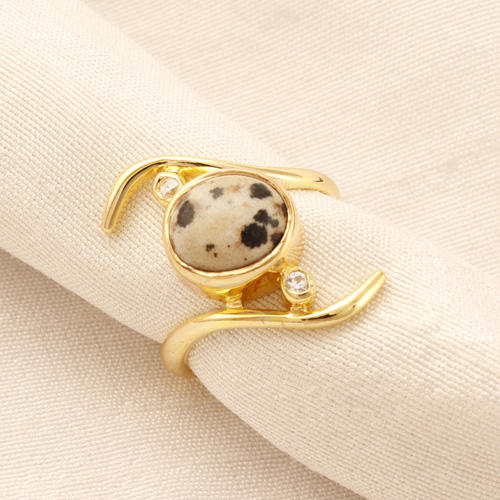 แหวนแฟนซีแฟชั่นปรับได้สำหรับหมั้นแหวนหินคู่ Dalmatian Jasper & Tiny Cz