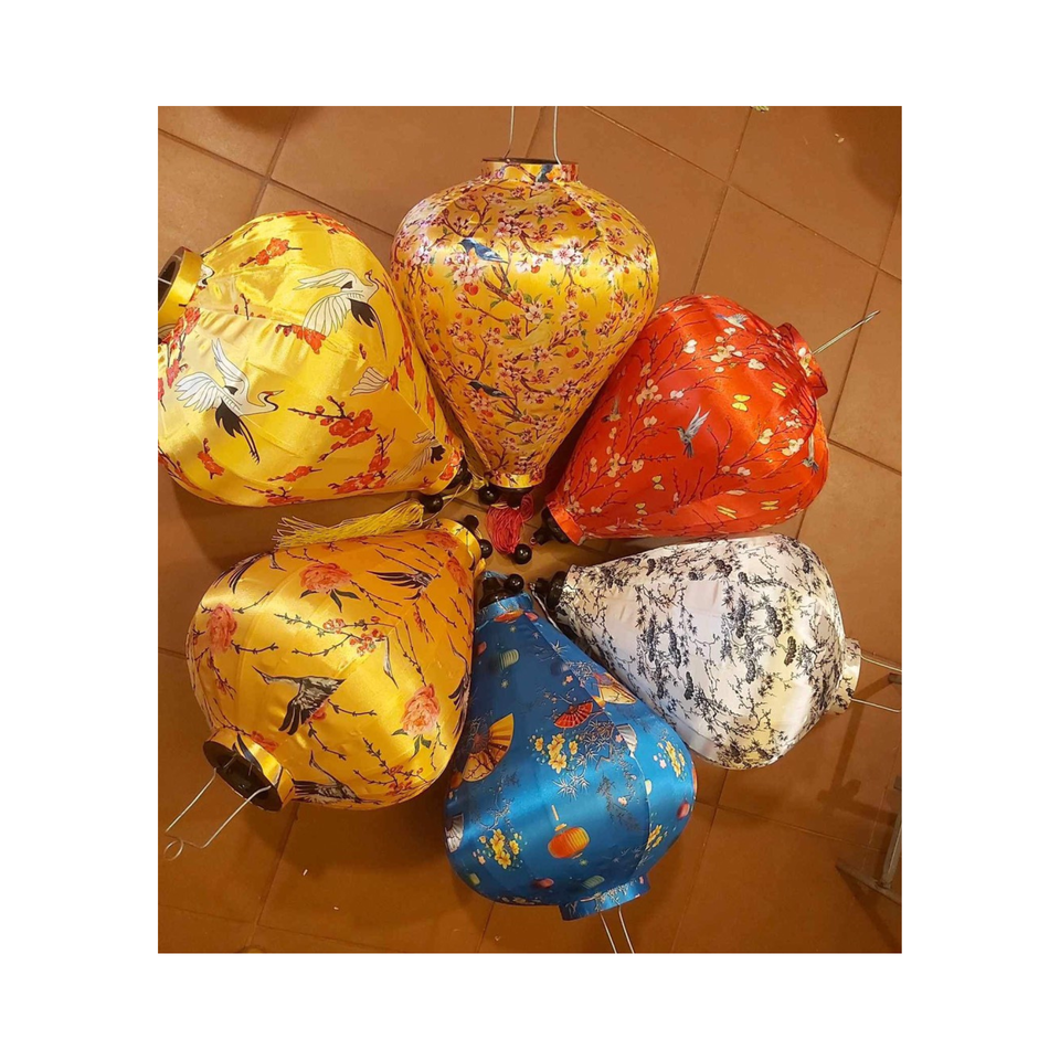 โคมไฟผ้าไหมฮอยโคมไฟผ้าไหมไม้ไผ่สำหรับตกแต่งบ้านในร่มกลางแจ้งเวียดนามโคมไฟผ้าไหมแขวน