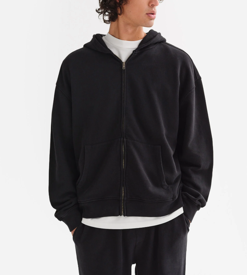 เสื้อฮู้ดดี้ทรงหลวมแบบมีซิป รุ่นใหม่มาแรง ทรงดรอปไหล่ ผ้าเทอร์รี่ฟอกสีสไตล์ฝรั่งเศส สำหรับผู้ชาย