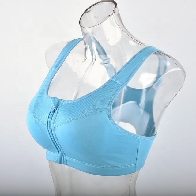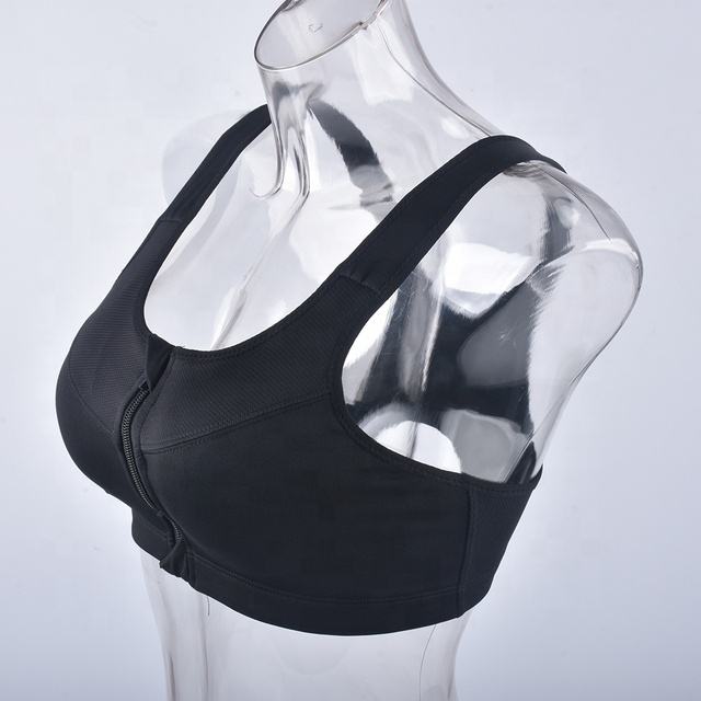 บราออกกำลังกายด้านหน้าแบบมีซิปด้านบนบราสำหรับผู้หญิงบราสายรัดปรับได้ลดแรงกระแทกสูง