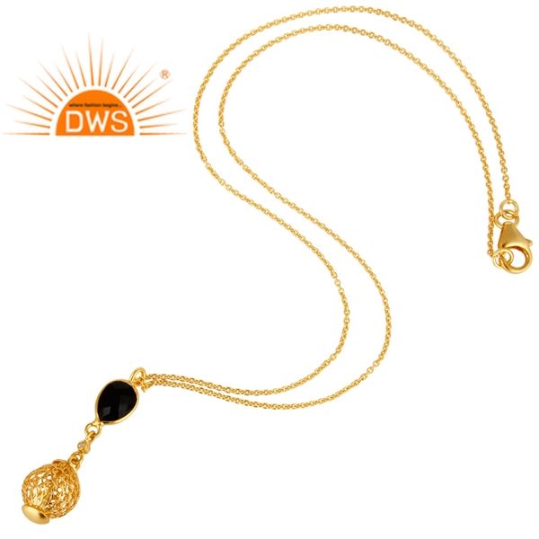 สร้อยคอจี้หยดน้ำโทแพซแบล็คออนิกซ์ ชุบทองคำ 18k บนตัวเรือนเงินแท้ ขายส่งเครื่องประดับ คอลเลคชั่นคลาสสิก