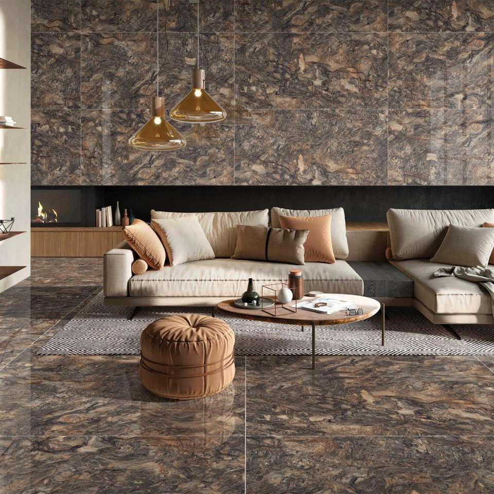 กระเบื้องปูพื้น600x1200มม. แบบคลาสสิกสีน้ำตาลบุษราคัมไม่ลื่นและกันรอยเปื้อนสำหรับบ้านสมัยใหม่