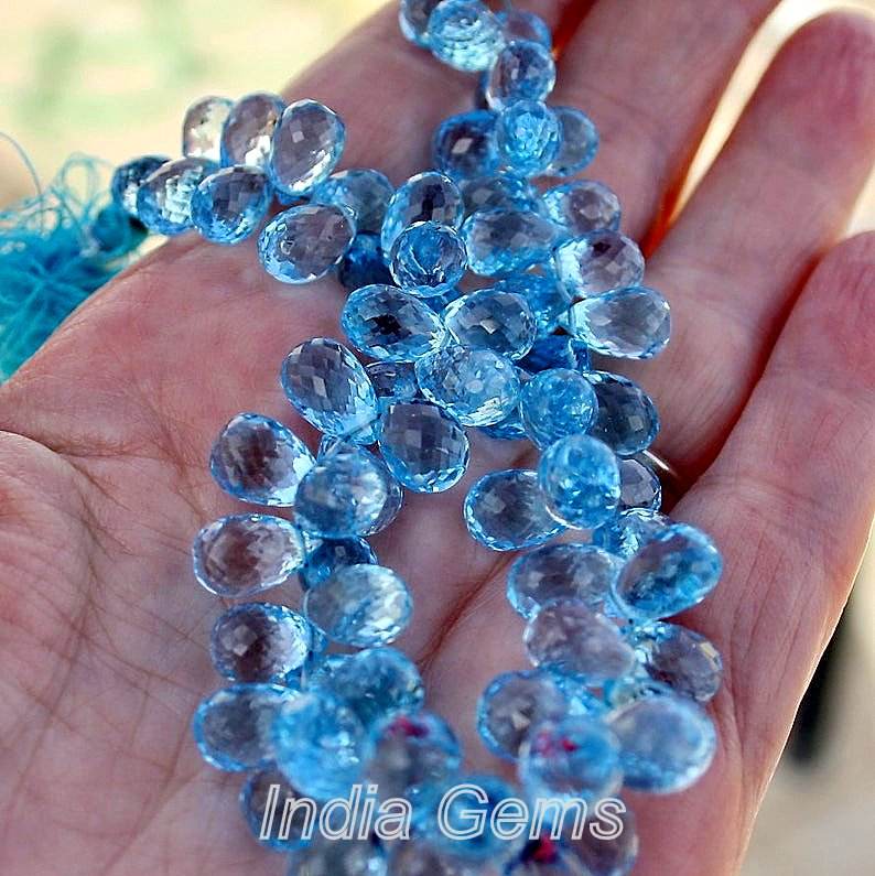 Topaz Sky Blue Teardrop Shape Faceted Briolette Cut Loose Gemstone Beads Natural Quality for Jewelry Making Wholesale Price