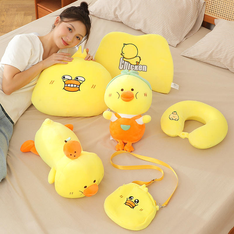 Topentar Bruce Chicken Plush Neck Pillow Cute Yellow Duck Doll For Girls Soft PP Cotton Pillow Toy