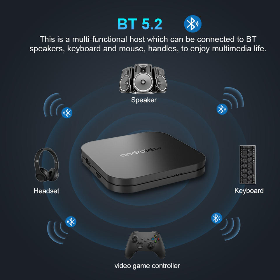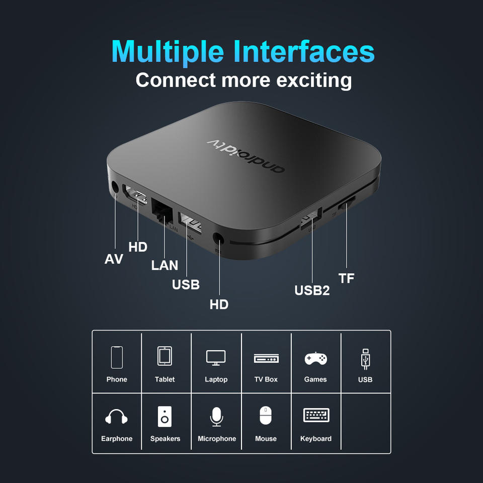 หน่วยความจำภายใน 16GB และ RAM 2GB: ด้วยหน่วยความจำภายใน 16GB และ RAM 2GB กล่องทีวีให้พื้นที่เพียงพอสำหรับแอปพลิเคชันและข้อมูล ทำให้มั่นใจได้ว่าผู้ใช้จะได้รับประสบการณ์ที่ตอบสนองและต่อเนื่อง