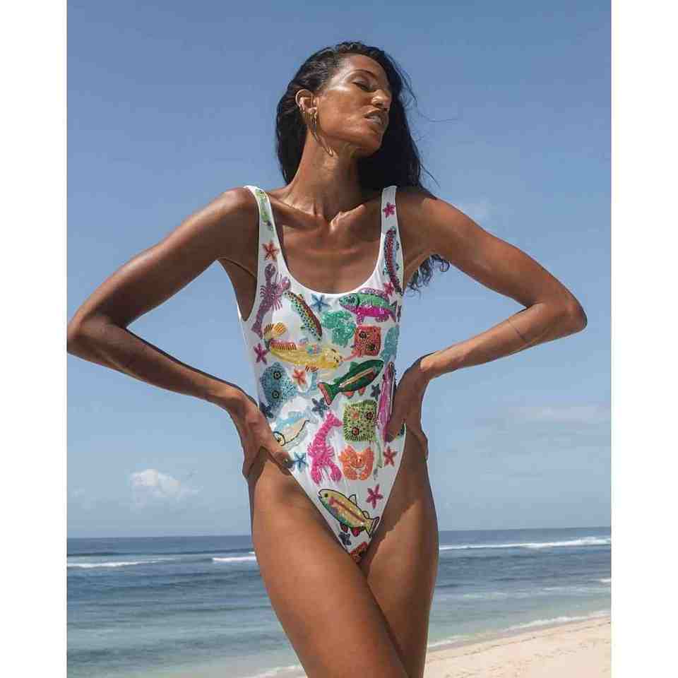 ชุดว่ายน้ำแบบชิ้นเดียวชุดว่ายน้ำชิ้นเดียวทำด้วยมือปักลูกปัดสำหรับนักว่ายน้ำชุดว่ายน้ำ