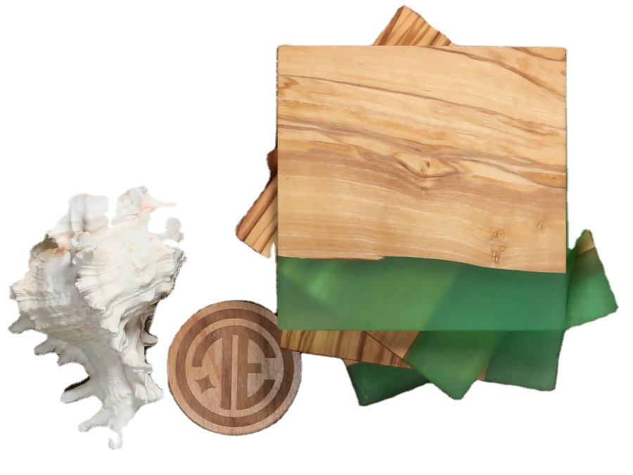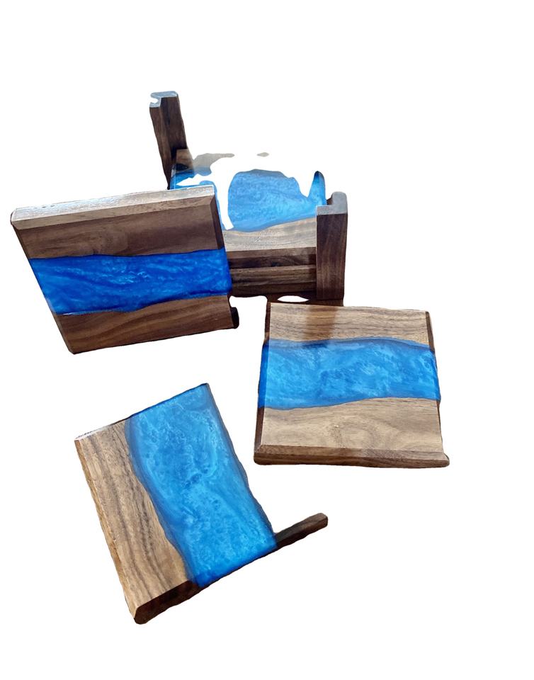 ชุดจานรองแก้ว4ชิ้นทำจากไม้และเรซินขัดเงากำหนดได้เอง2024