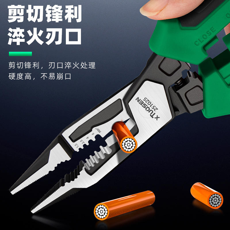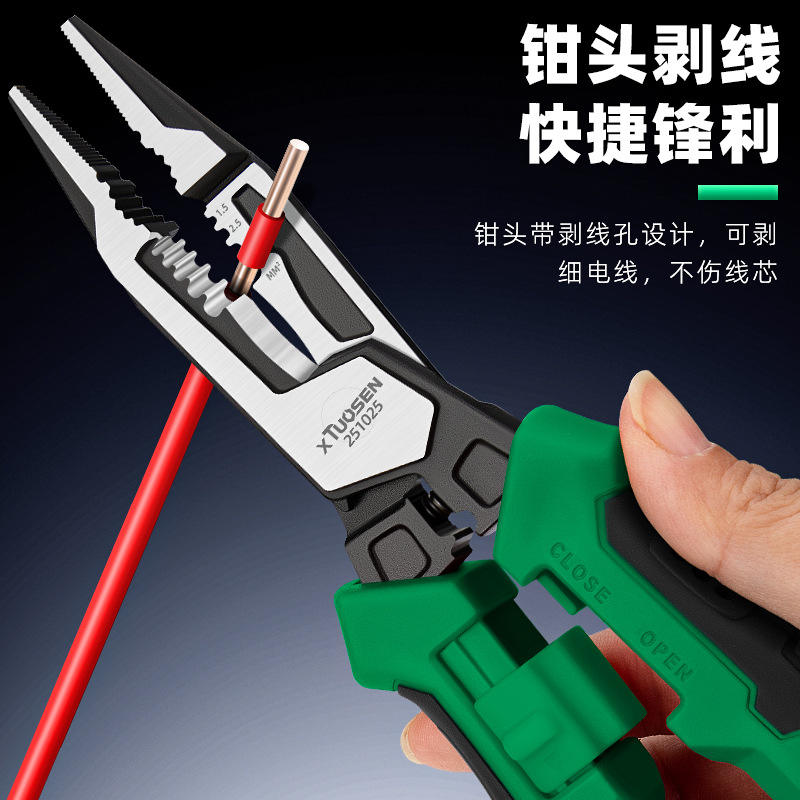 คีมอเนกประสงค์ Topsen ขนาด 1/4 นิ้ว ปลายหยัก ตัดลวด ปอกสายไฟ ด้ามจับกันลื่น หน่วยวัดแบบอิมพีเรียล