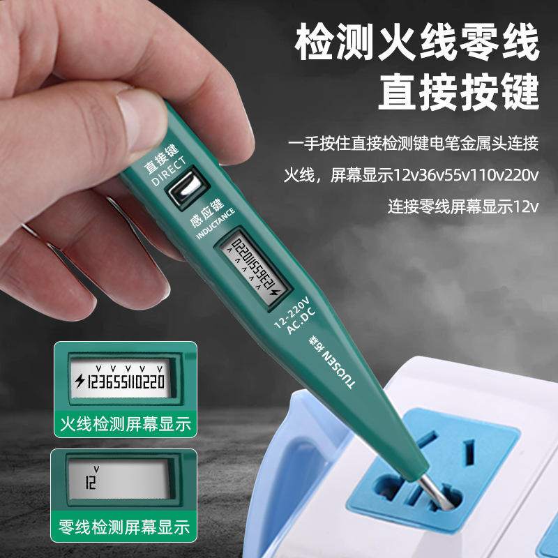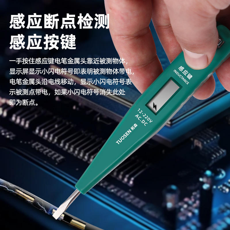 เครื่องมือ topsen 0401ปากกาทดสอบดิจิตอลแบบไม่มีแบตเตอรี่จอแสดงผล LED เฟสเดียวเครื่องวัดแรงดันไฟฟ้ากระแสสลับ12-220V