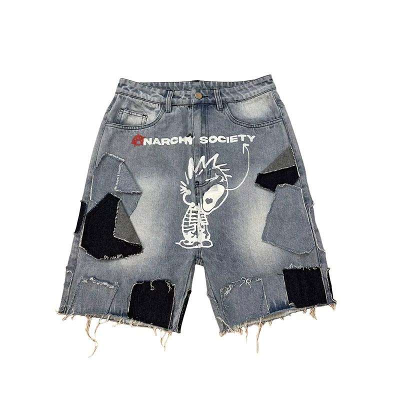กางเกงขาสั้นผ้ายีนส์สำหรับผู้ชาย Topshow กางเกงขาสั้นผ้ายีนส์เย็บปะติดแบบออกแบบได้ตามต้องการ