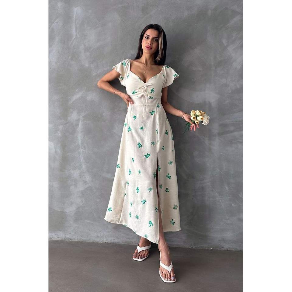 เดรสลำลองลายมรกต Topshow แขนระบายพร้อมดีไซน์ผูกโบว์-ขายส่ง