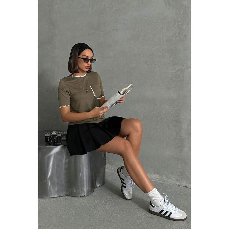เสื้อท็อปโชว์สีกากี ลายเชพเพิร์ด สไตล์ลำลองสำหรับผู้หญิง ระบายอากาศได้ดี ทรงพอดีตัว สีพื้น พิมพ์ลายตัวอักษร ตกแต่งด้วยลายพิมพ์ เหมาะสำหรับฤดูร้อนและฤดูใบไม้ผลิ