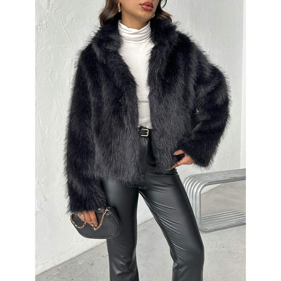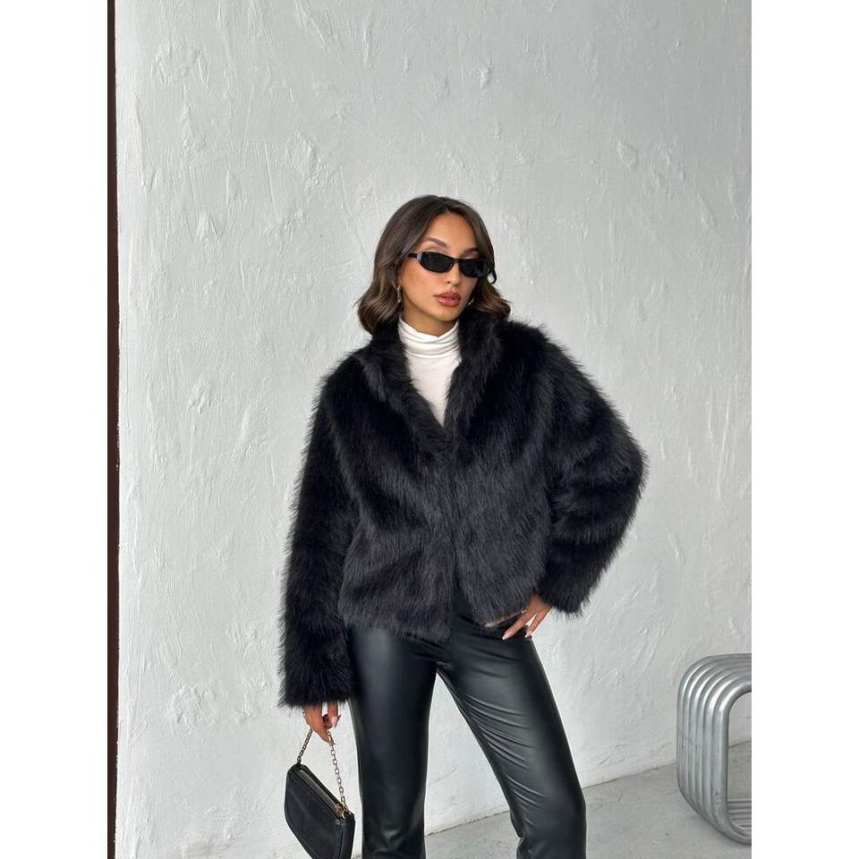 เสื้อโค้ทขนกระต่าย Topshow สีดำ แบบกระดุมแถวเดียว ตกแต่งด้วยกระดุม ผ้าขนสัตว์ย้อมสี เสื้อคลุมขายส่ง