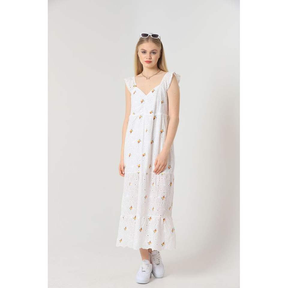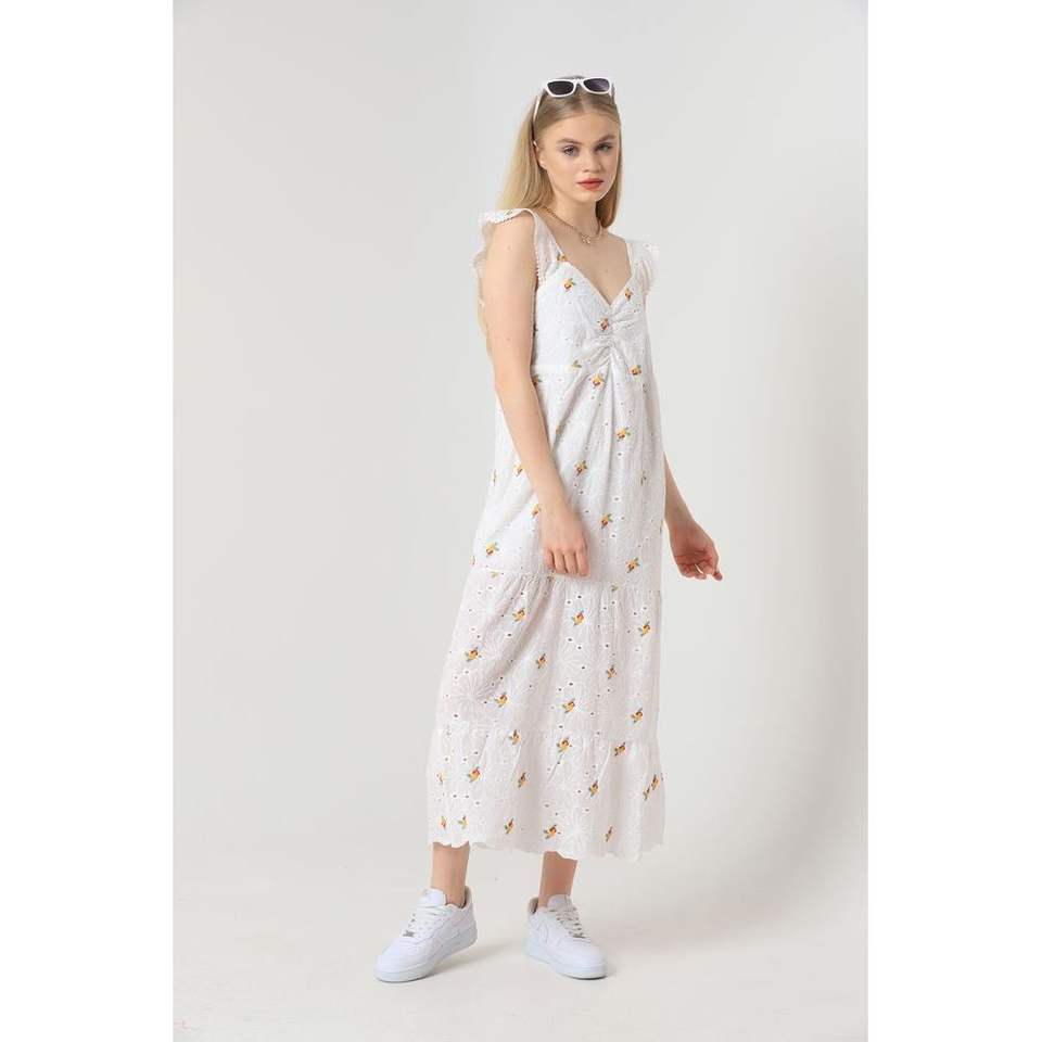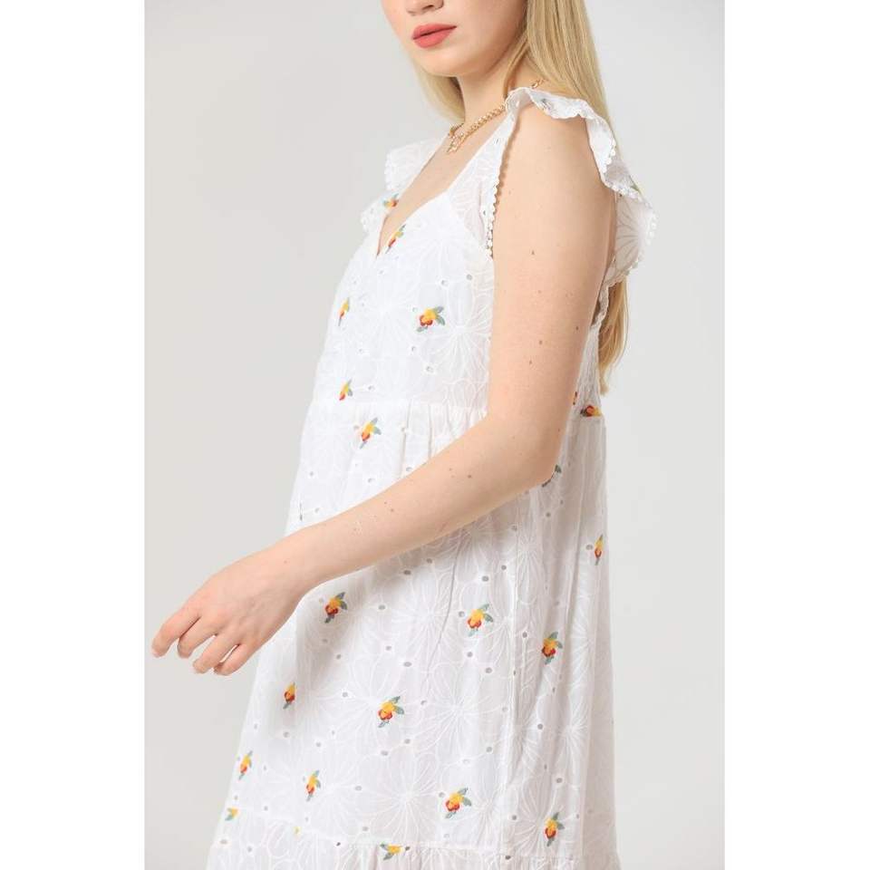 เดรสลำลองคอวีทรงรูชลายดอกไม้สีเหลือง ผลิตภัณฑ์ขายส่ง Topshow