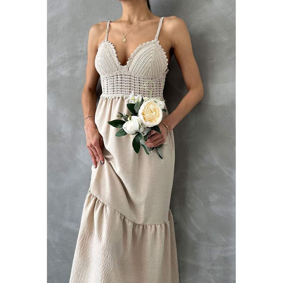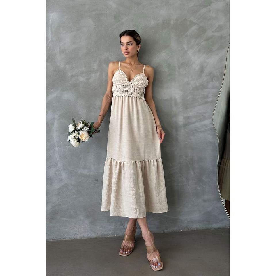 ชุดเดรสลำลองผ้าลินินแบบสายเดี่ยว คอวี ดีไซน์ยาวเต็มตัว จาก Topshow Wholesale