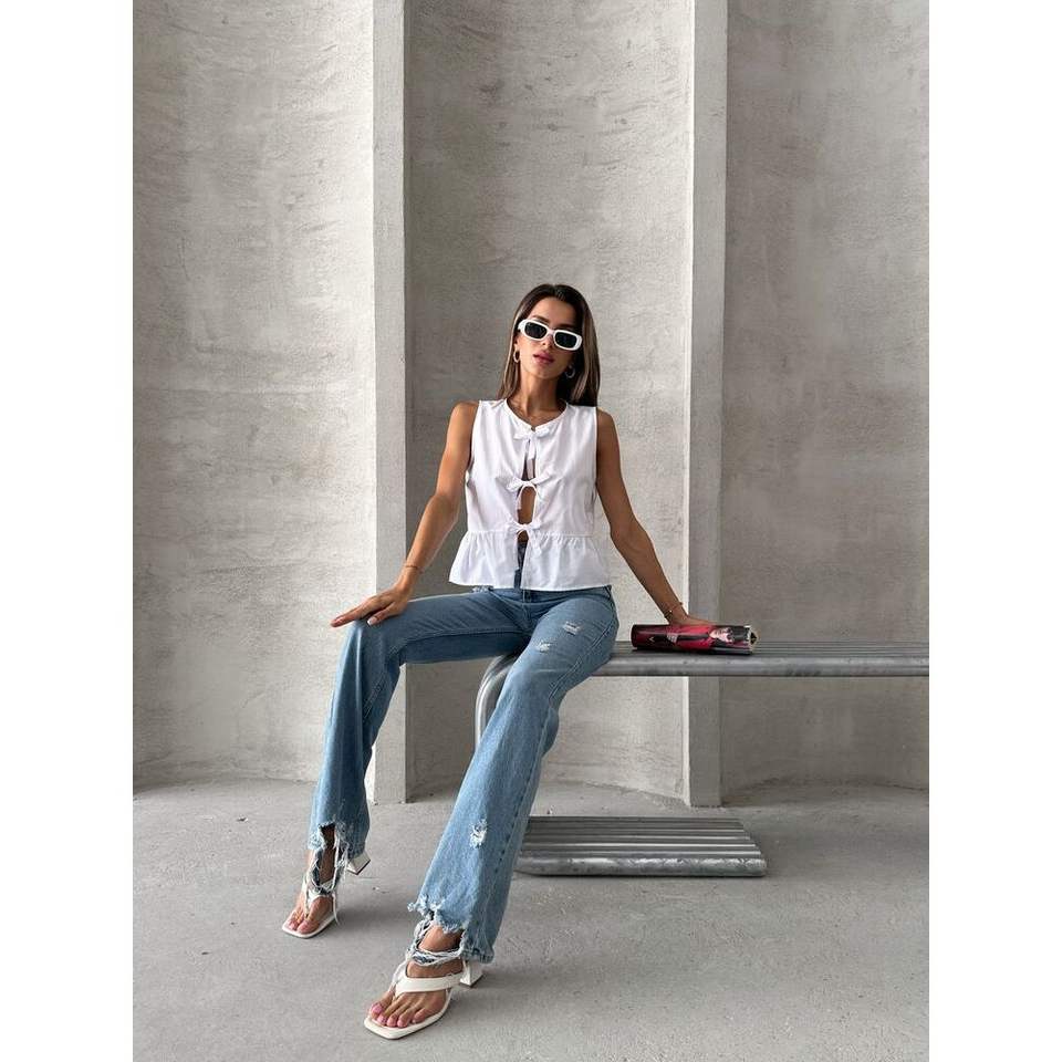 เสื้อผู้หญิง Topshow แบบผูกด้านหน้า สีขาว ขายส่ง