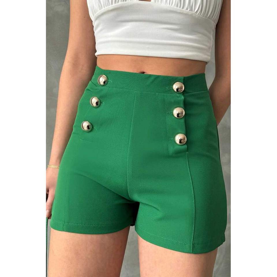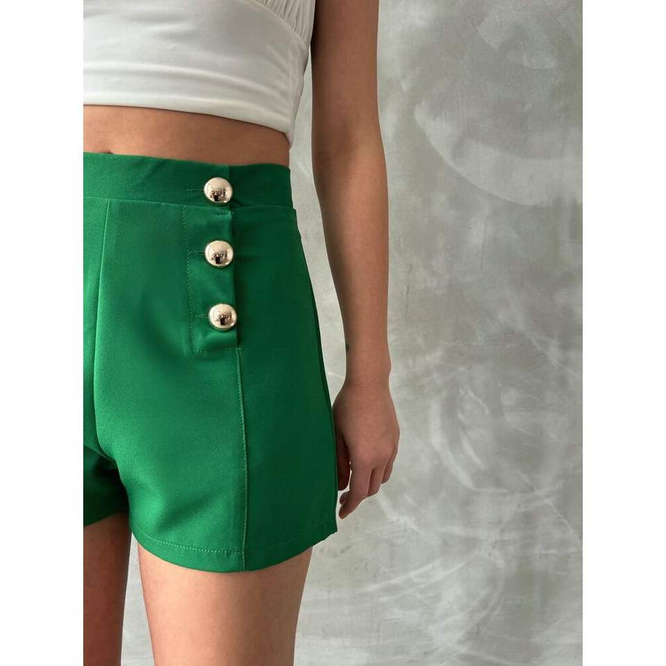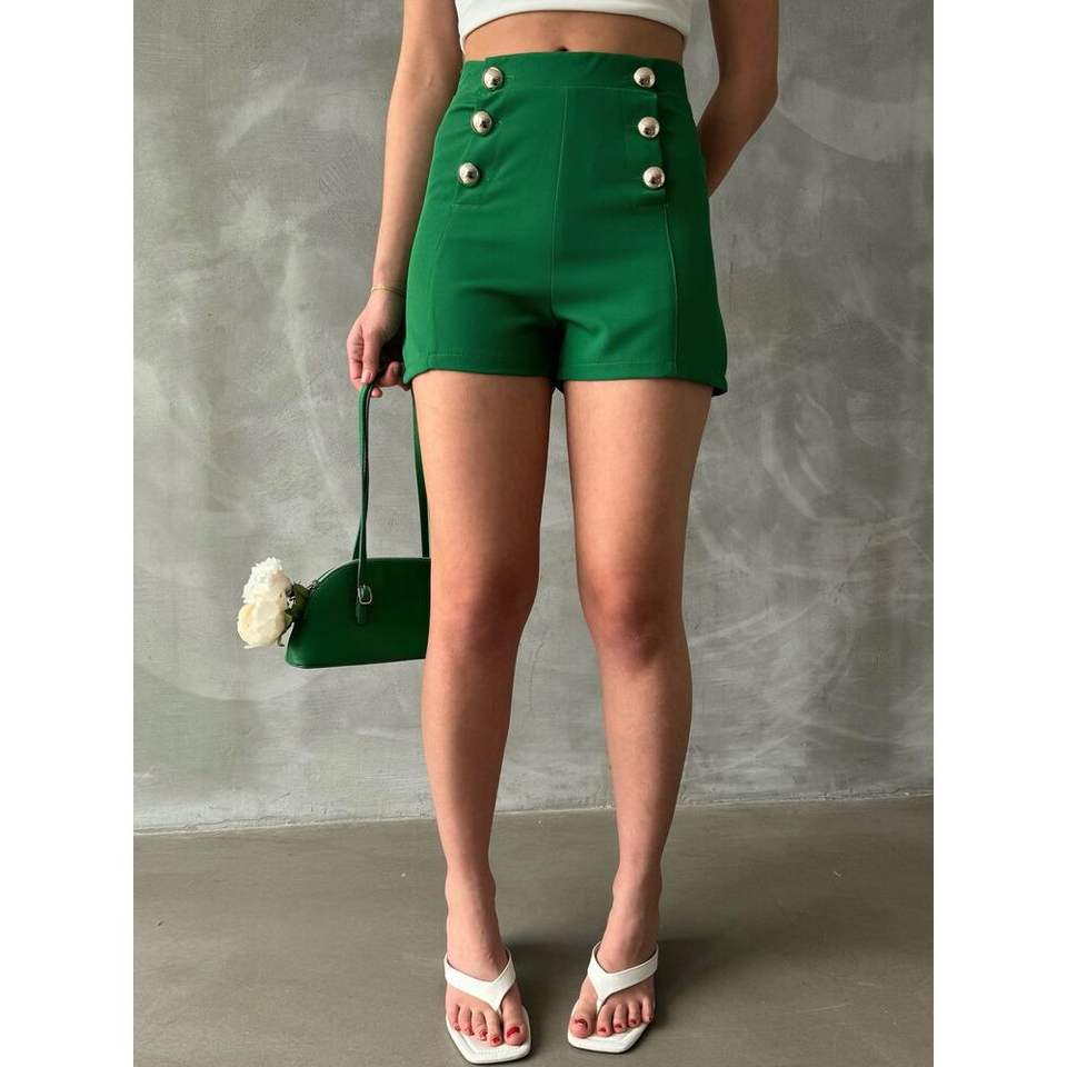 กางเกงขาสั้นผู้หญิงสีเขียวมรกตติดกระดุมขายส่ง Topshow