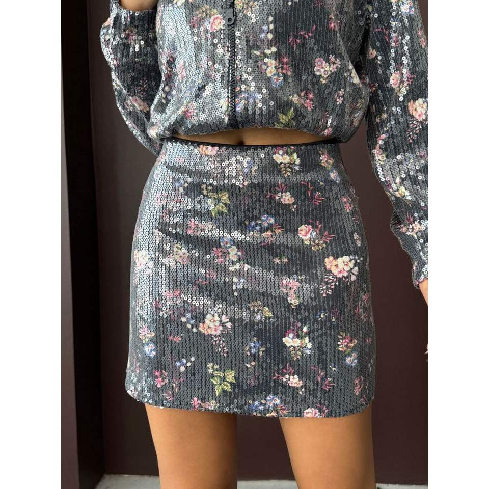 Topshow Women's Floral Print Sequin Short Skirts-Wholesale