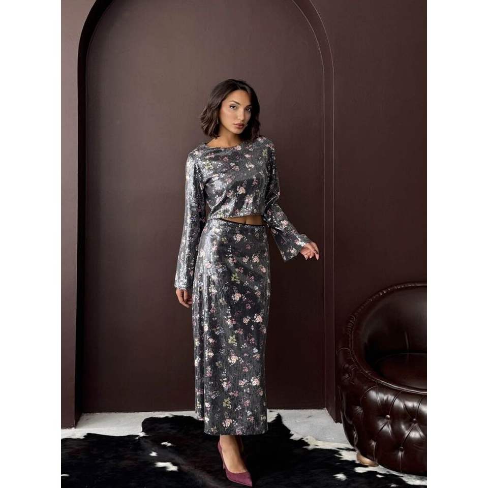 กระโปรงยาวลายดอกไม้ปักเลื่อมสำหรับผู้หญิง Topshow - สินค้าขายส่ง