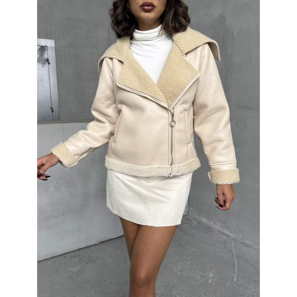 เสื้อแจ็คเก็ตหนังผู้หญิงแบบซิปสีอ่อน ยี่ห้อ Topshow ขายส่ง
