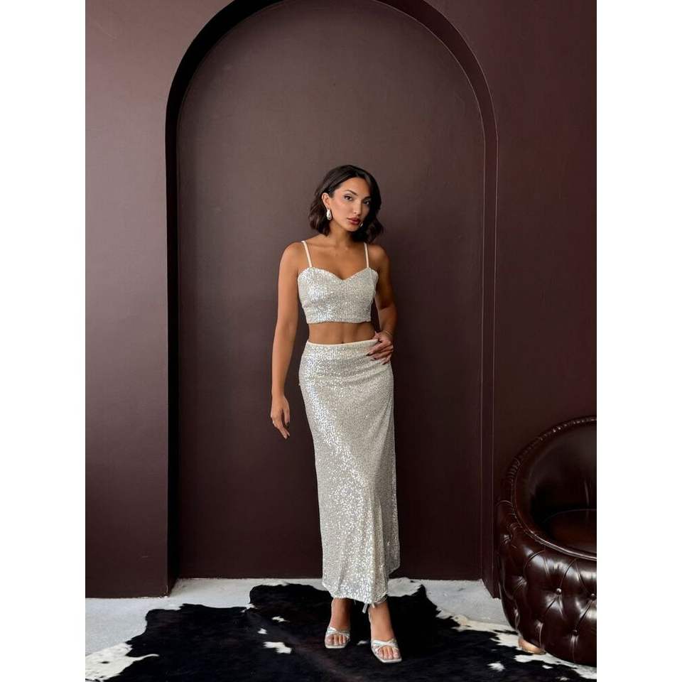 Topshow Women's Long Skirt with Stone Sequins Elegant and Stylish