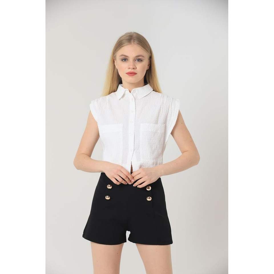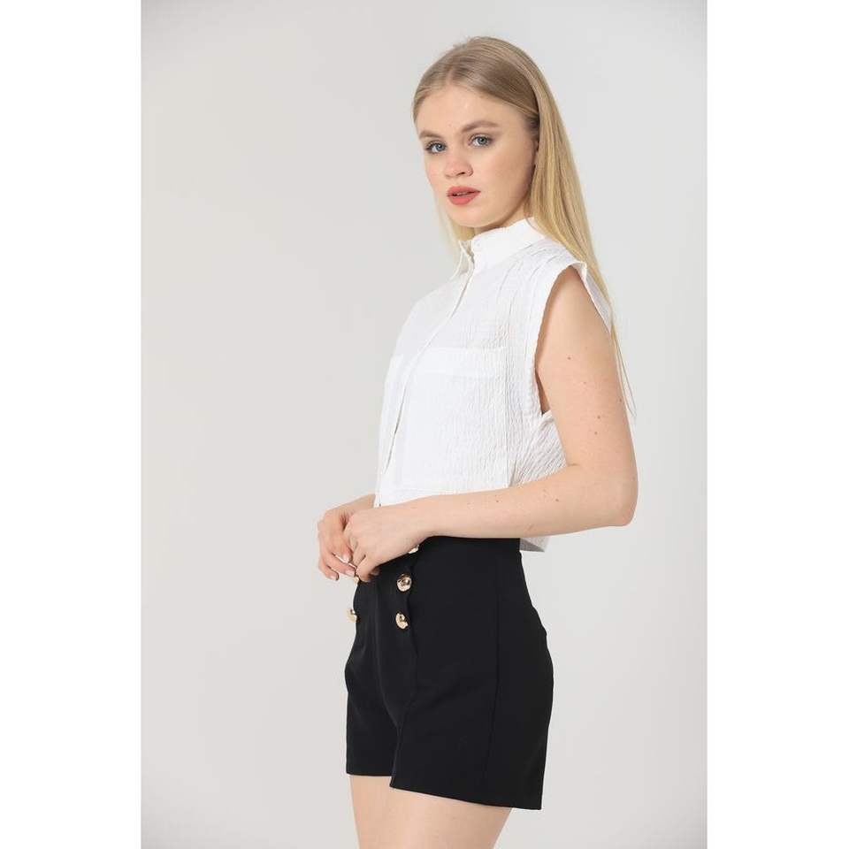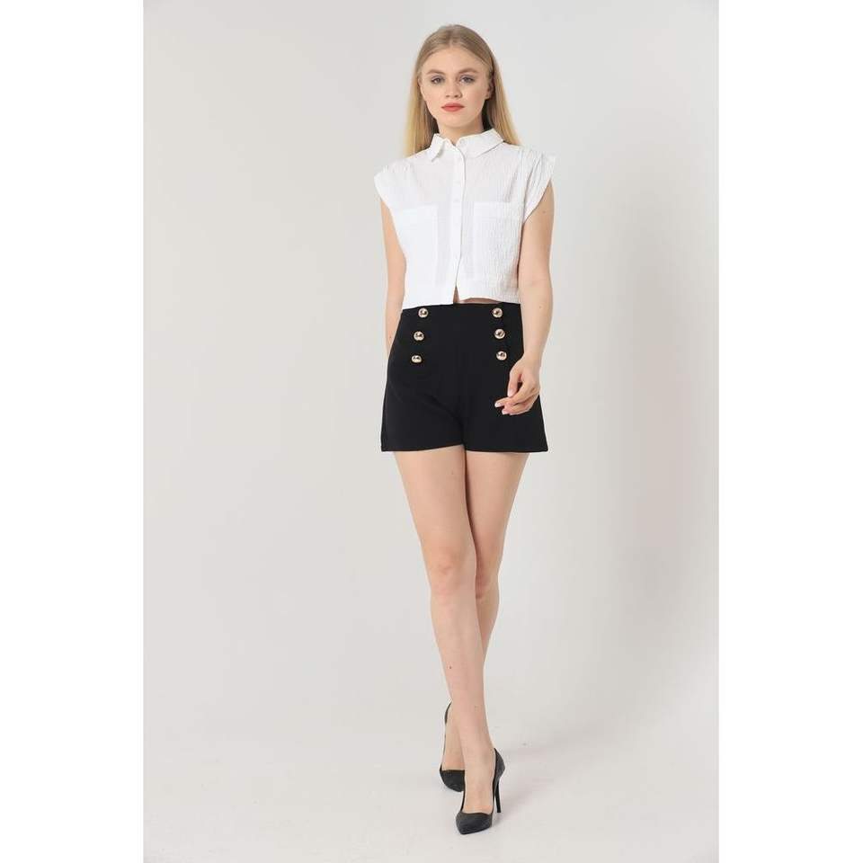 กางเกงขาสั้นผู้หญิง Topshow สีดำ แต่งกระดุม ขายส่ง