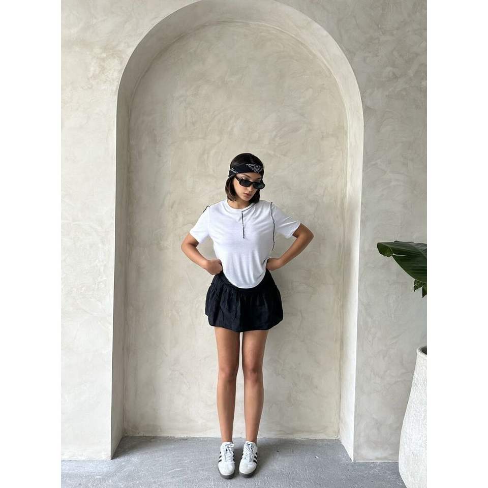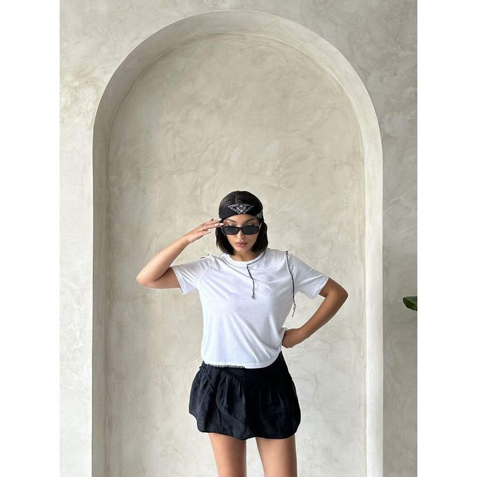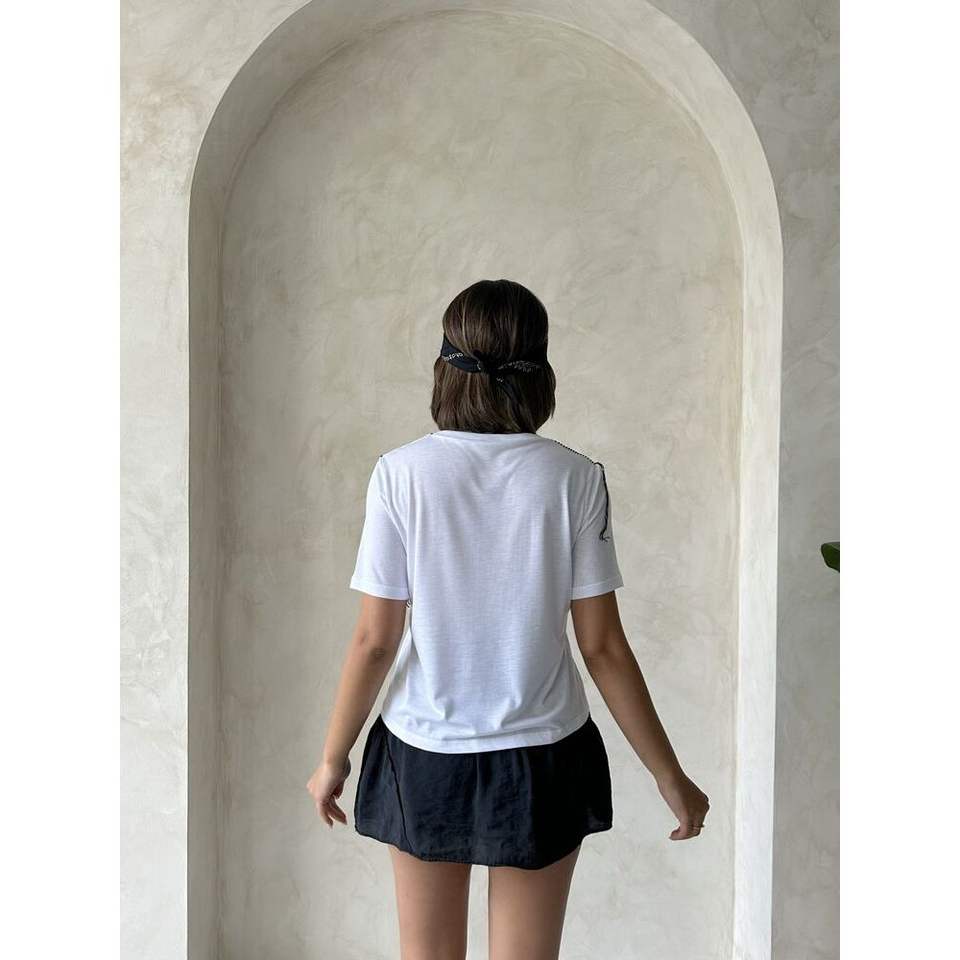 เสื้อยืดผู้หญิง Topshow สีขาว ลายเย็บแบบเชพเพิร์ด ขายส่ง