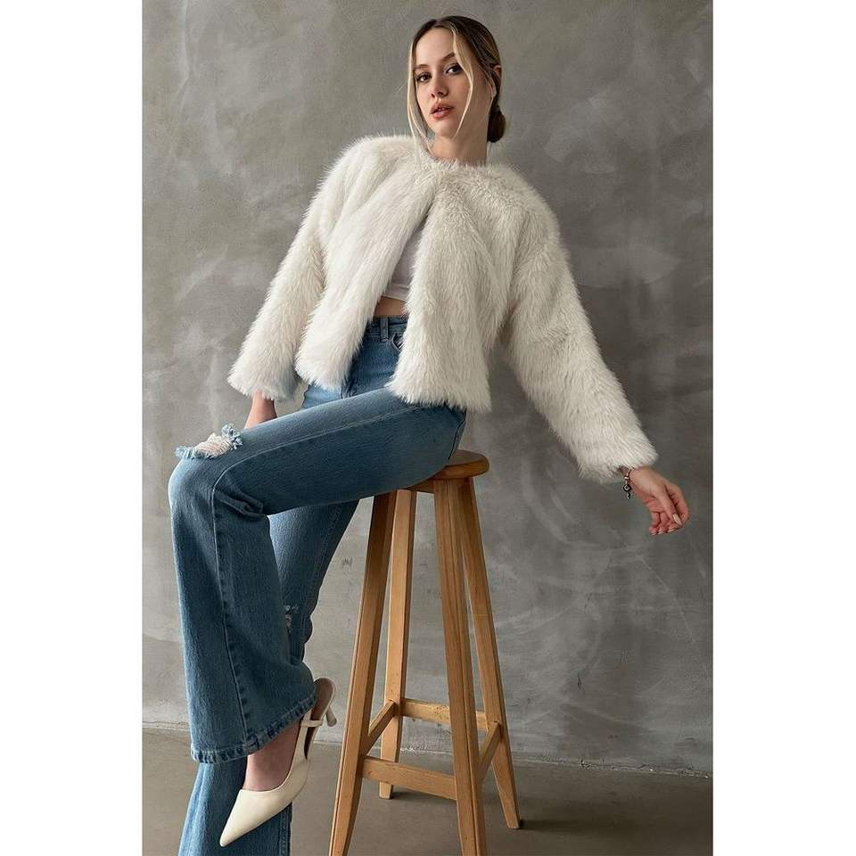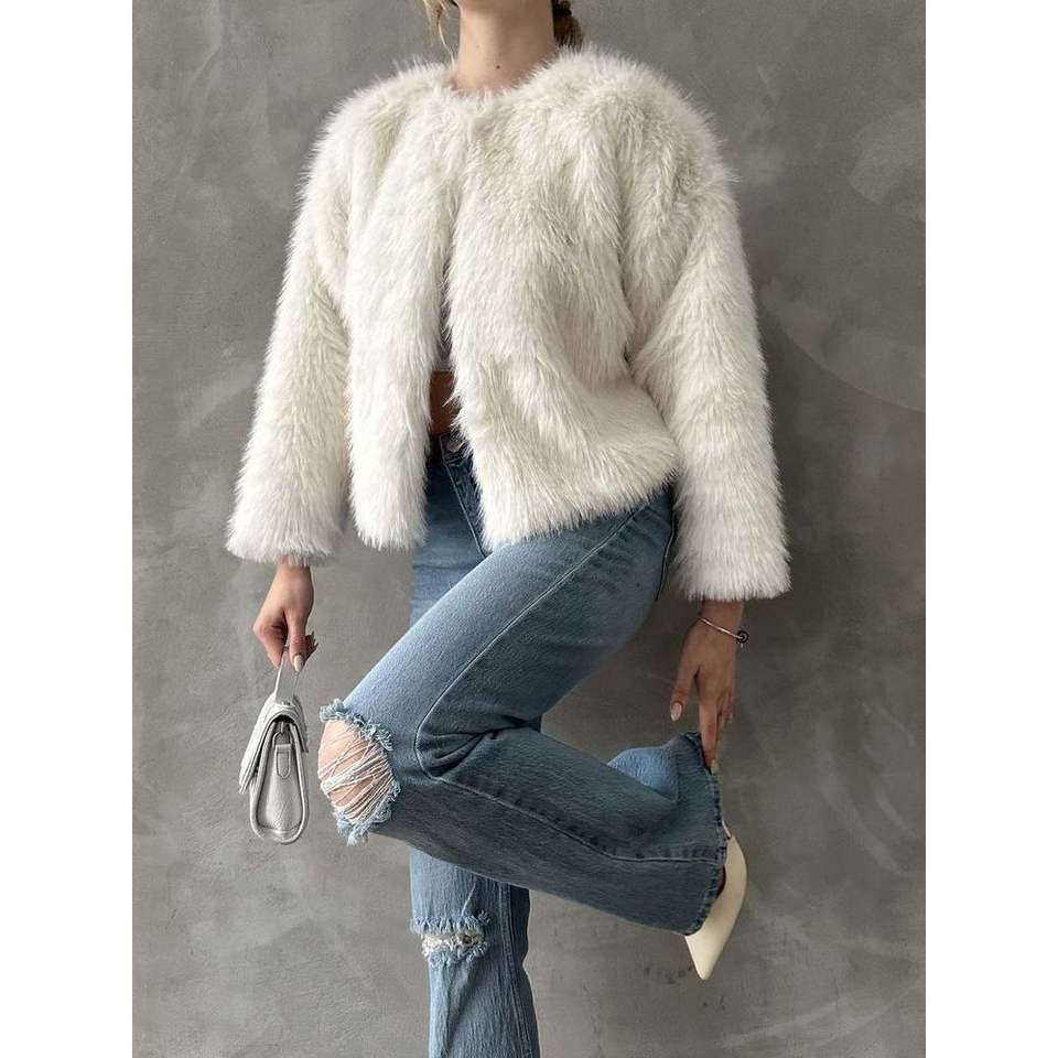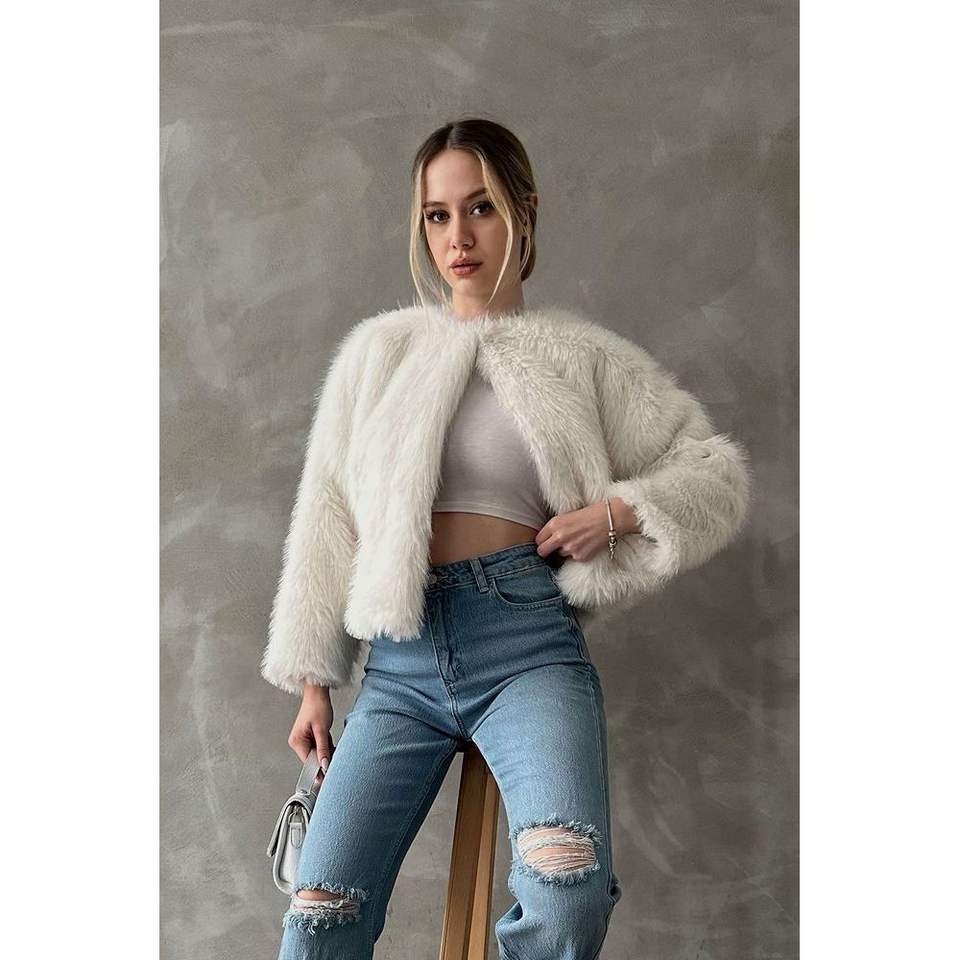 เสื้อโค้ทขนเฟอร์เทียมสีครีมสำหรับผู้หญิง Topshow ขายส่งเสื้อแจ็คเก็ต