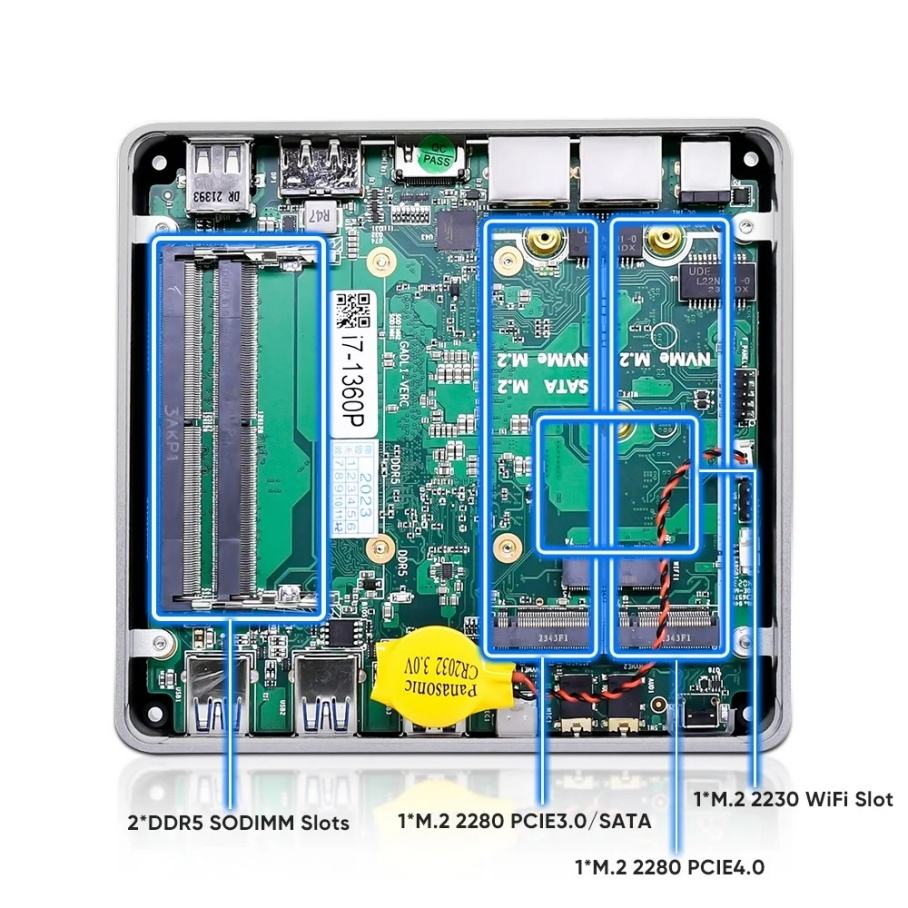 RAM:2 x SO-DIMM DDR5 slots, max 64GB 4800MHz